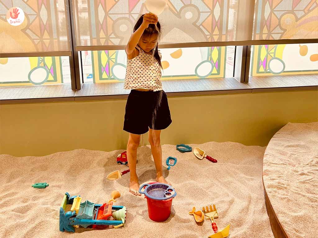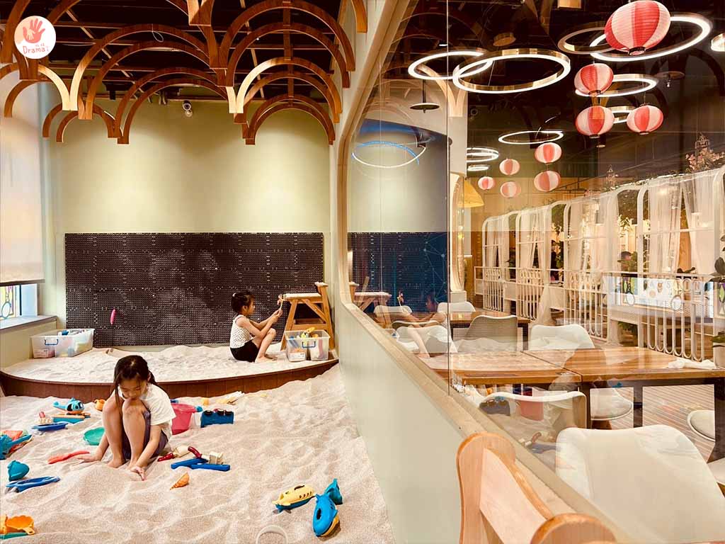 沙池區空間不大,在玻璃窗外設有休憩區可以媽媽聊天兼顧小孩