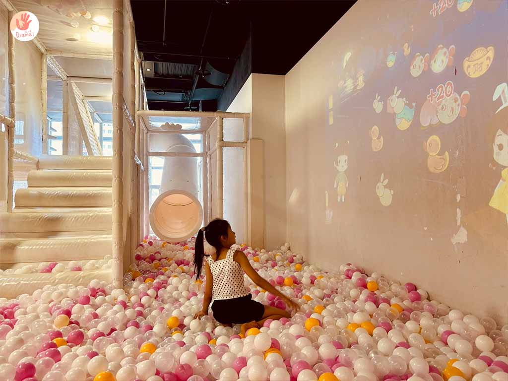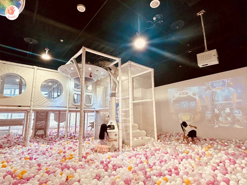 孩子們超愛這裡,有球池、還有互動丟球,吸球機、跳床,這區可以玩很久