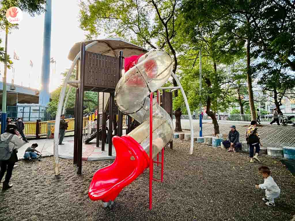 [新莊棒球主題共融式公園]位在新莊運動公園,公園設有地下停車場(導航點這裡),平日約$30/時,假日約$40/時