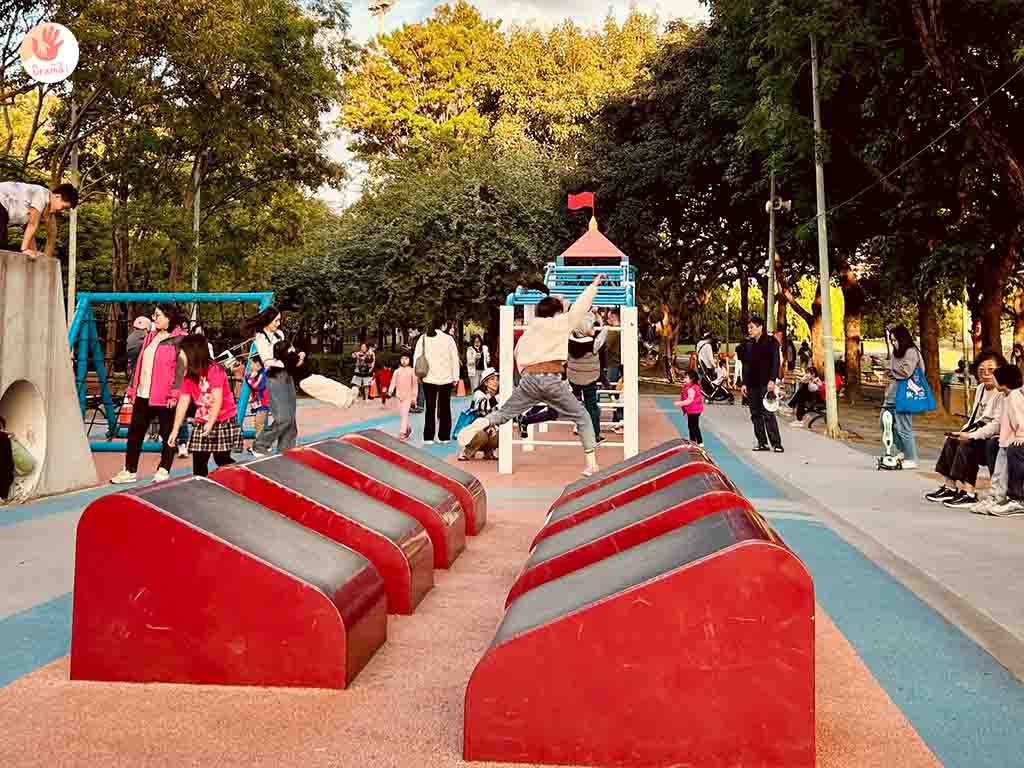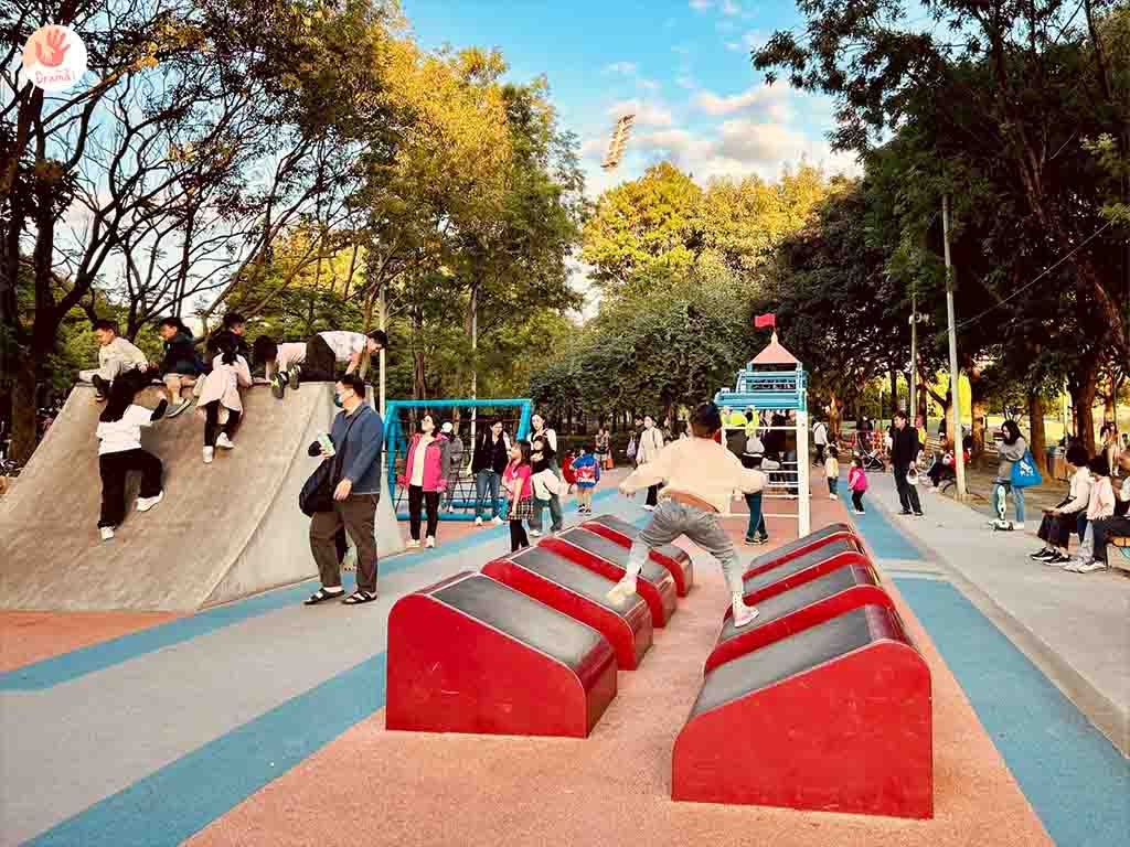 [新莊棒球主題共融式公園]忍者踏步跳躍前行,小孩超級愛玩~~~這區有點像跑酷體能區