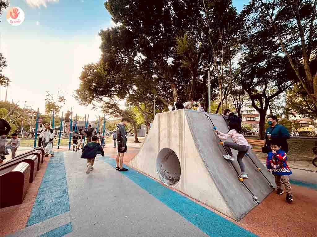 [新莊棒球主題共融式公園]還有一區是體能挑戰區,中大童很適合來這區放電,我們也主題停在這裡玩