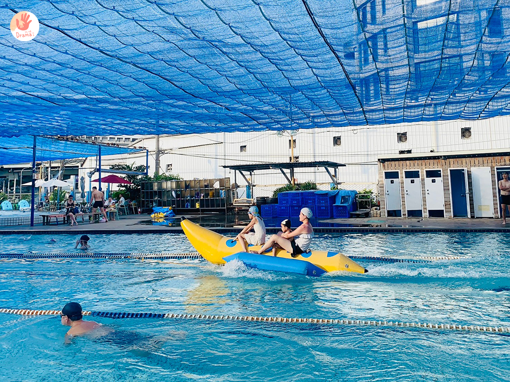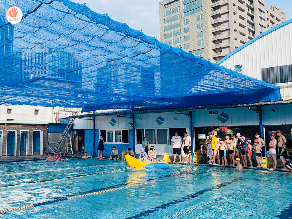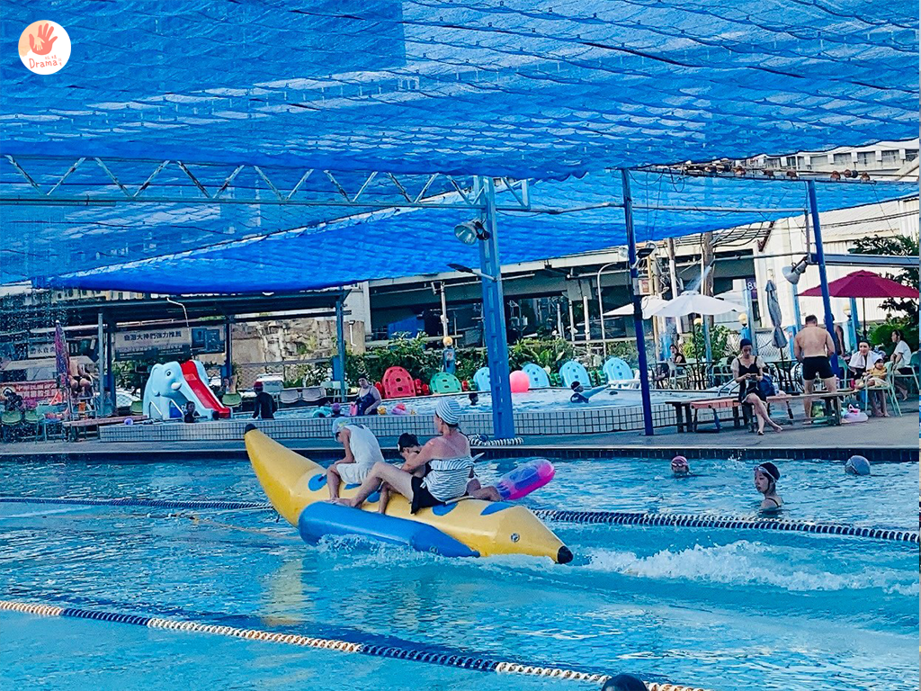 中和的游泳池都好浮誇,香蕉船已成為標配了,之前去中和的[鑫北一游泳池]初次看到香蕉船超級興奮,沒想到[水藍天游泳館]也有香蕉船,而且更狂直接給你50公尺超長距離更過癮。