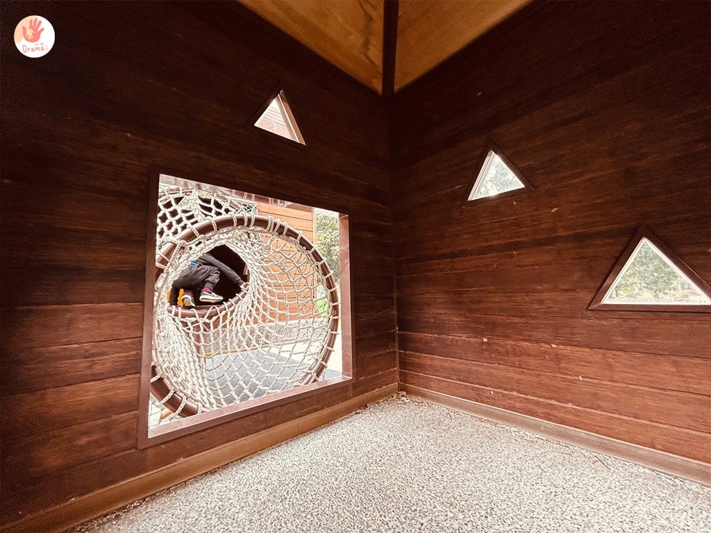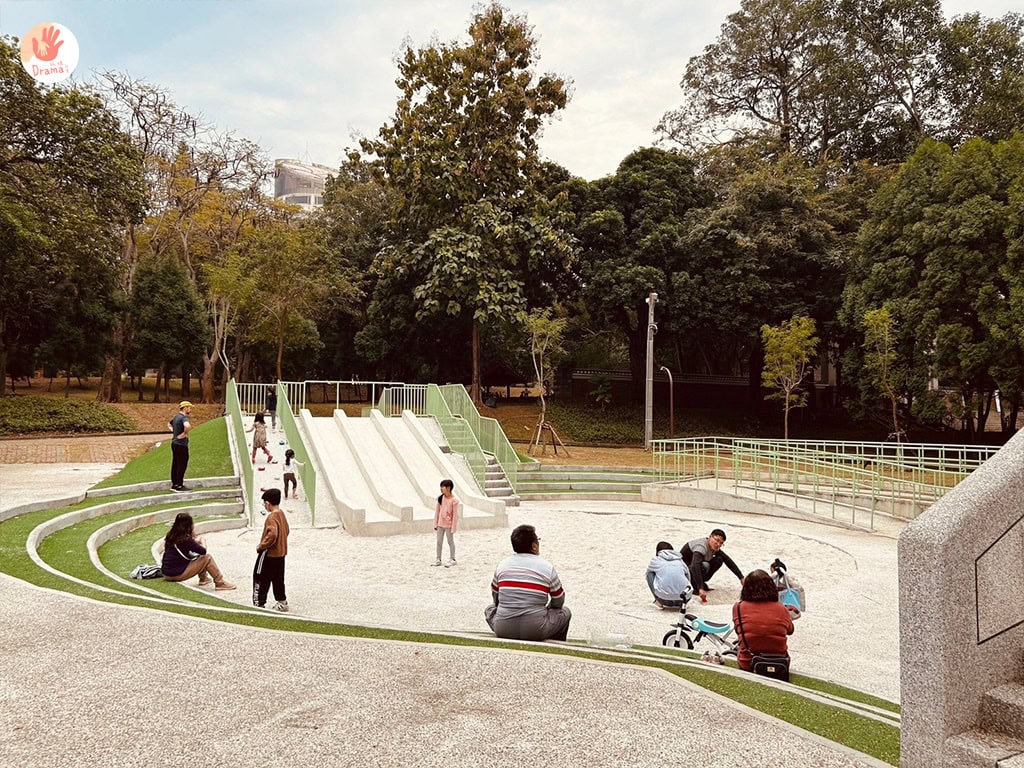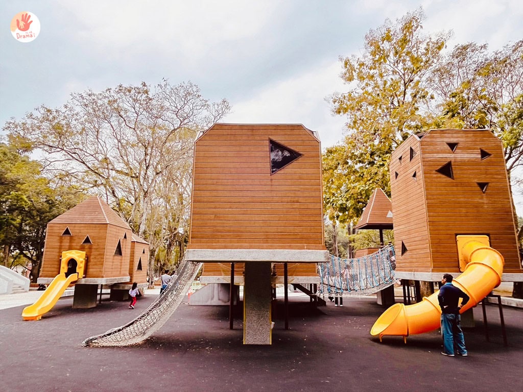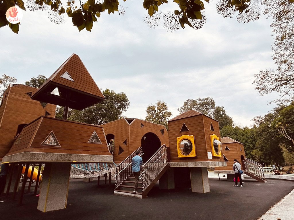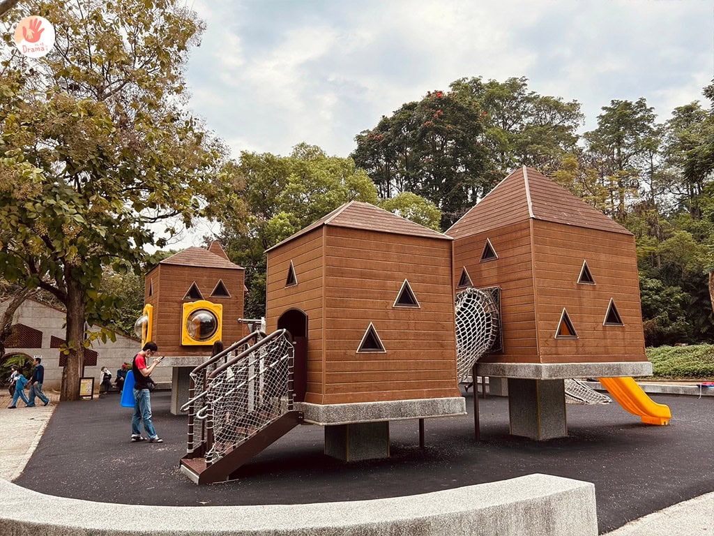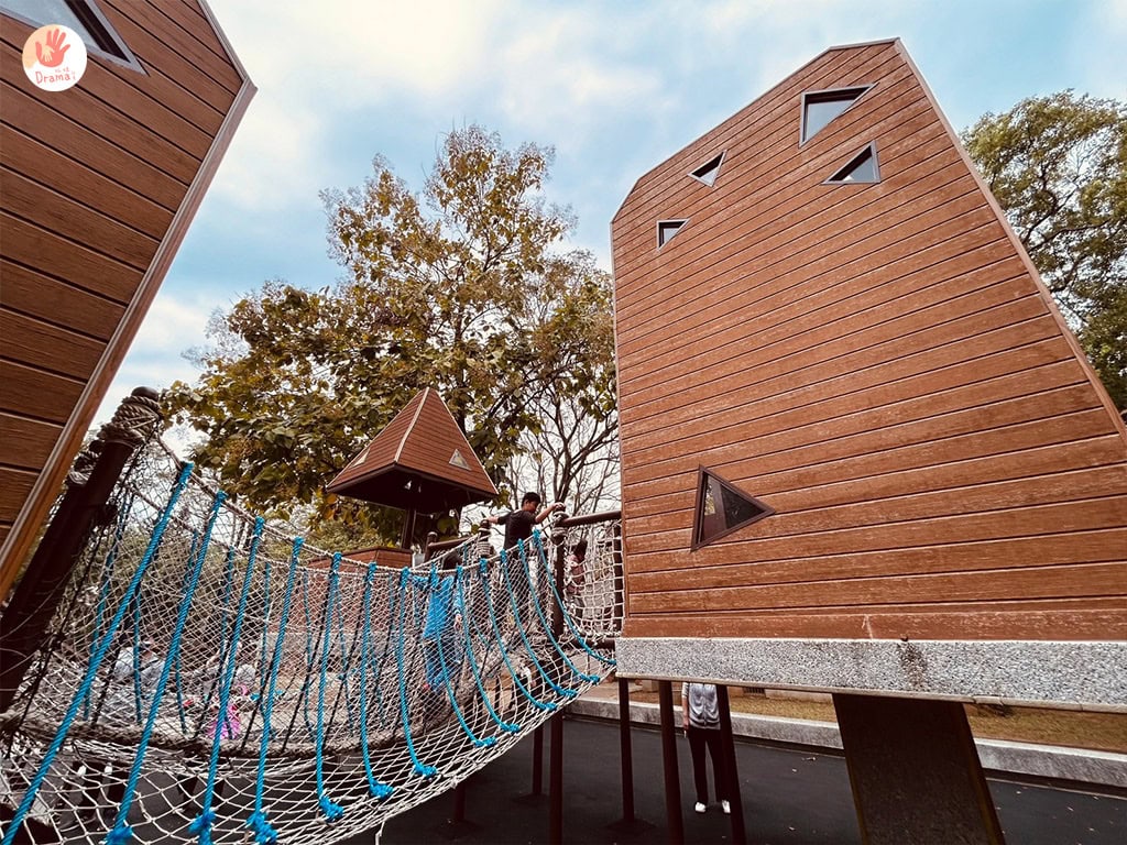 [樹屋尋寶遊戲場]有分二區塊,一區是有沙池溜滑梯,另一區就是特色冒險樹屋遊戲場
