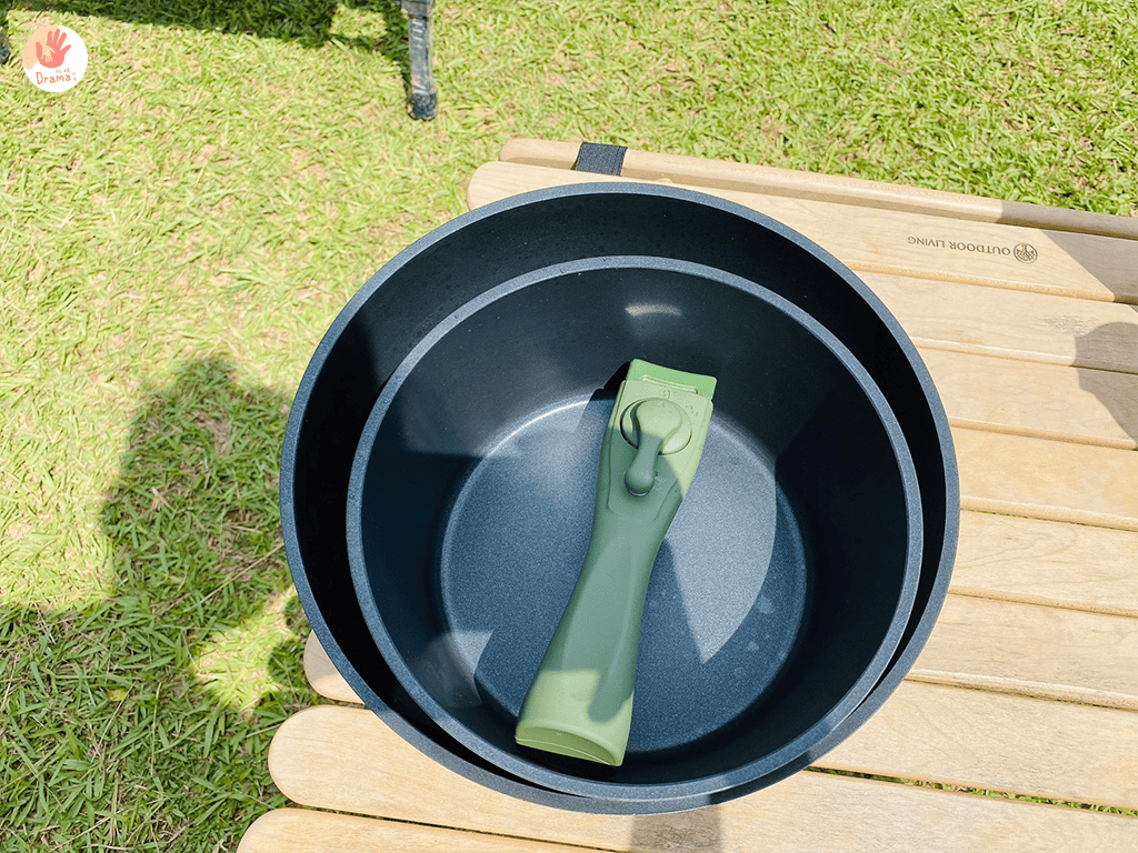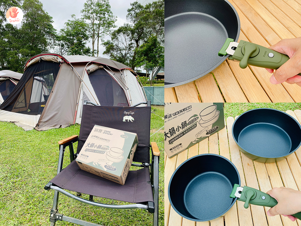 玩露營除了放風小孩在草地奔跑外,大人們的主要工作就是料理,準備下午點心,還要忙著準備晚餐,車子裡塞滿各種鍋具,每次鍋子多一個握把就超佔空間,這次要來推薦露營好物[鍋寶百變魔法可拆式不沾鍋組]26cm深煎鍋 + 20cm深湯鍋,就一個方盒子攜帶方便好收納,超完美組合超級推~~~~