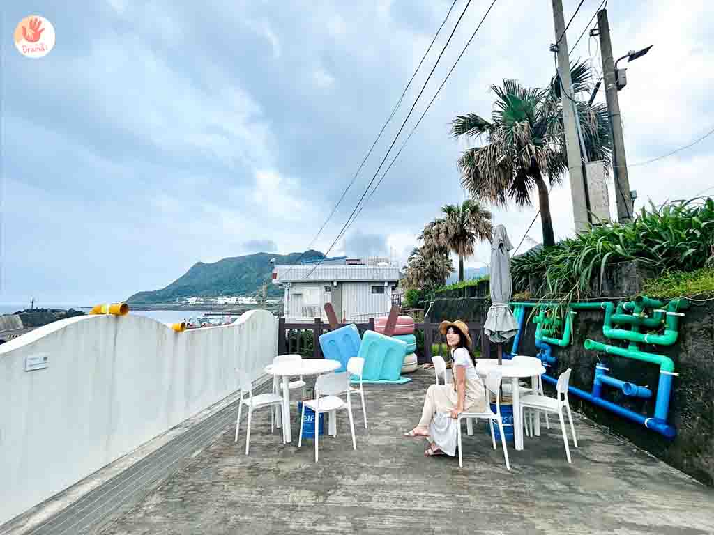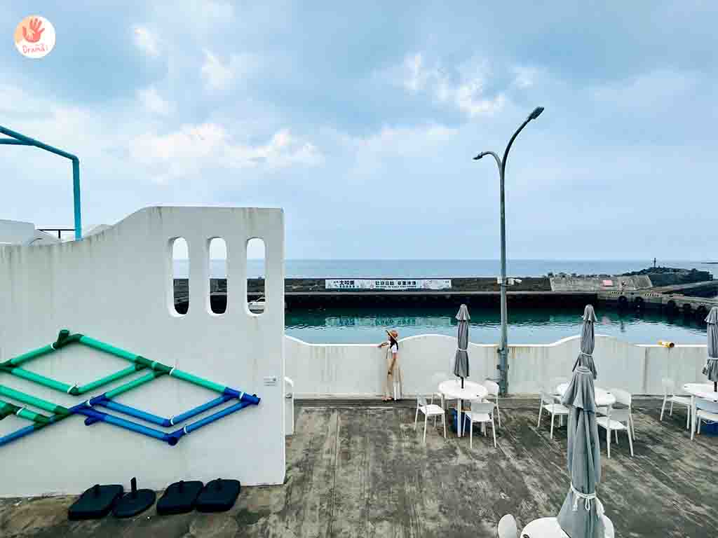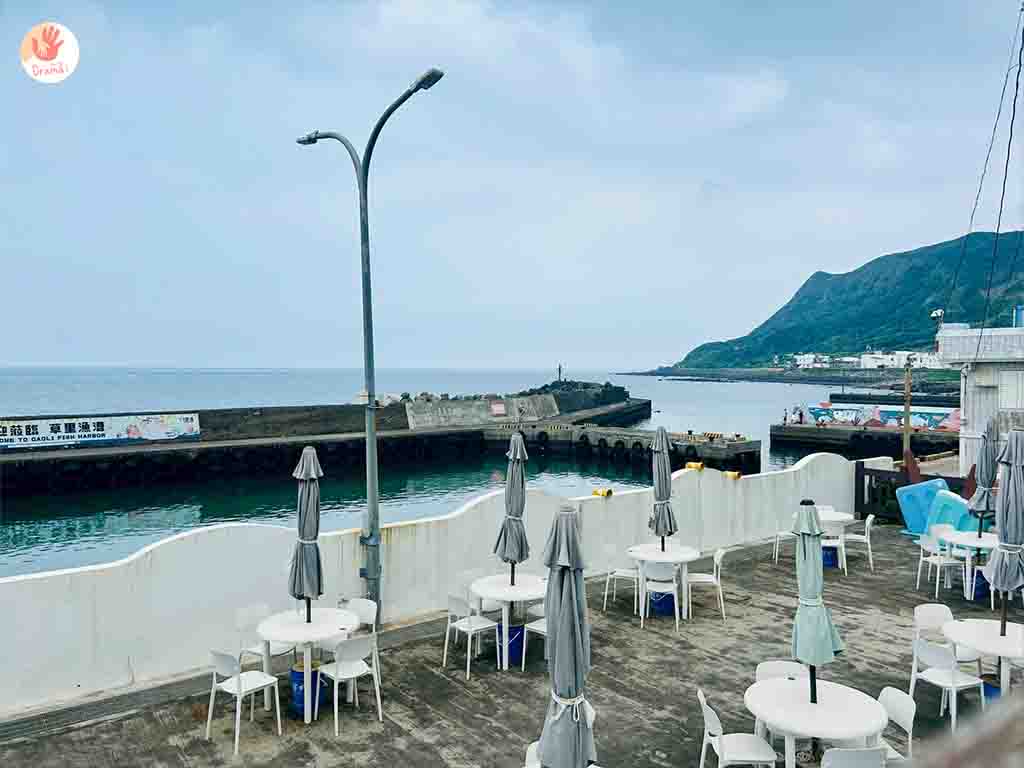 [金點草里驛棧]就在草里漁港旁,戶外座位視野可以聞到漁港海味,也可以直接觀海很放鬆