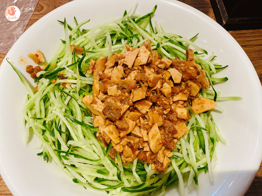 最後我們點了一麵一飯,麵食選了秘製雙醬拌麵,北方的拉麵麵條配上細條舖好舖滿的黃瓜,吃多不會太膩,加上辣油更多了不同風味
