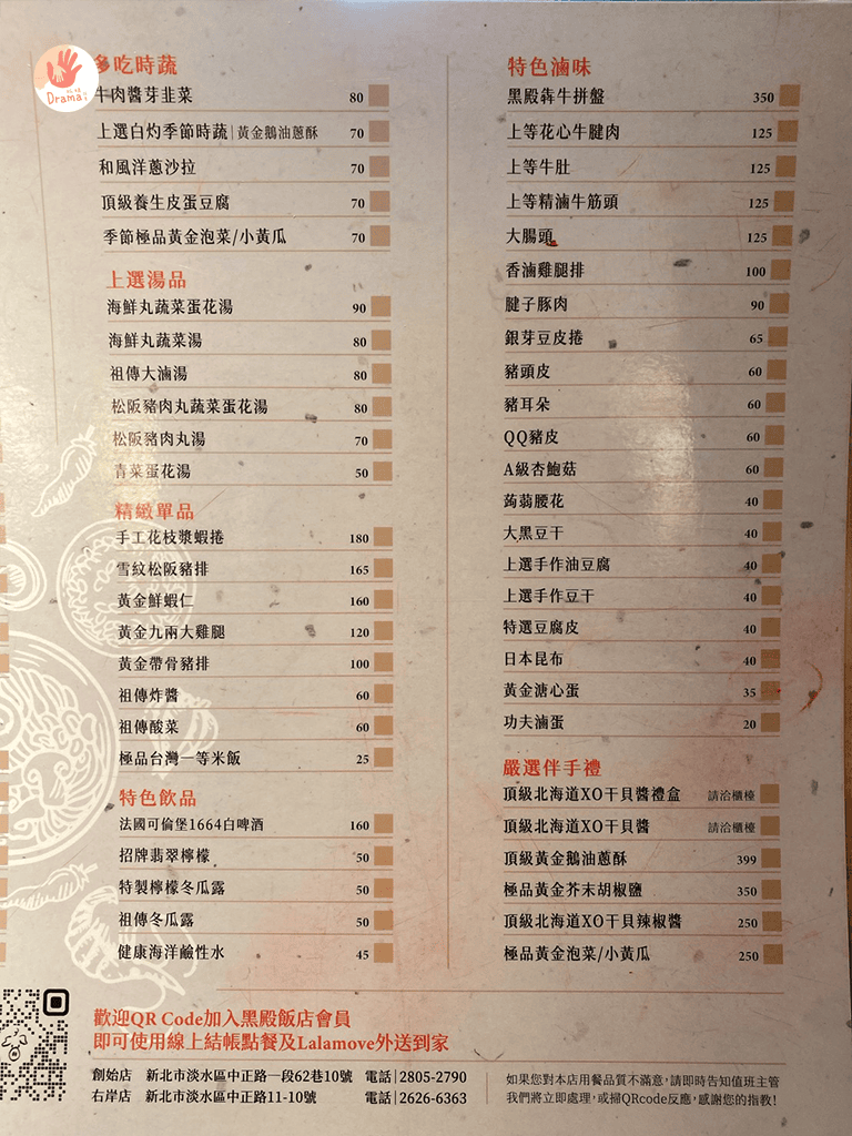 這次來訪淡水,我們打算前往漁人碼頭的[積木共和國]和[淡水阿熊勇闖歡樂島]帶孩子放電玩一波,午餐就選擇了這間50年人氣老店,古早味美食規模化經營,把古早味變食尚,[黑殿飯店]在淡水有二間,我們是來訪創始店,這間店面很大,用餐時間不怕沒位置。