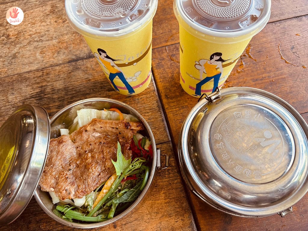 午餐放飯是奮起湖便當盒,[築夢森居]老闆以前在阿里山奮起湖賣便當,所以就讓大家吃這種鐵盒便當很有古早懷舊風情