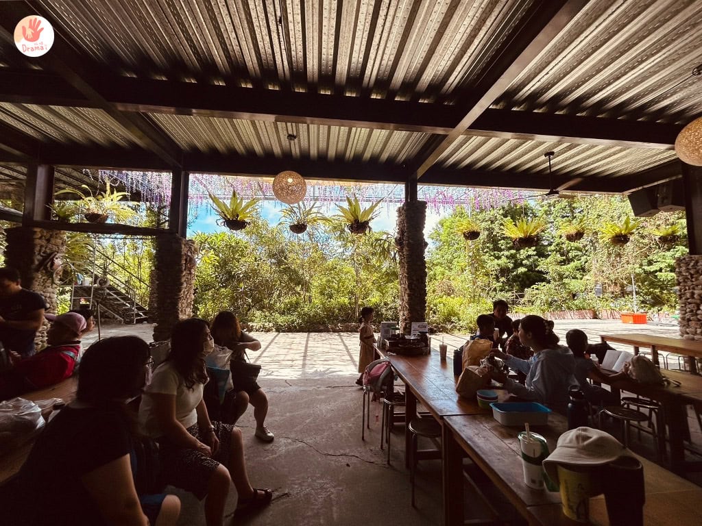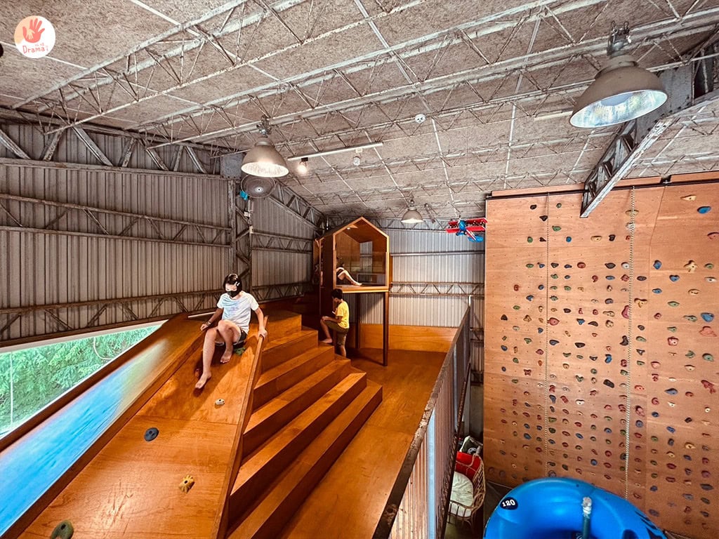 二樓用餐區有一個通往小木屋的遊戲區,但閣樓空間的設計中午時間溫度是蠻高的,但小孩都很耐熱很強