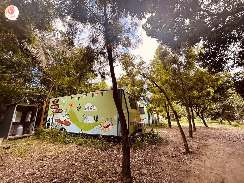 [築夢森居]這裡提供露營車住宿,但綠意天然樹包圍的環境下,視野讓人放鬆有一種恬靜生活感