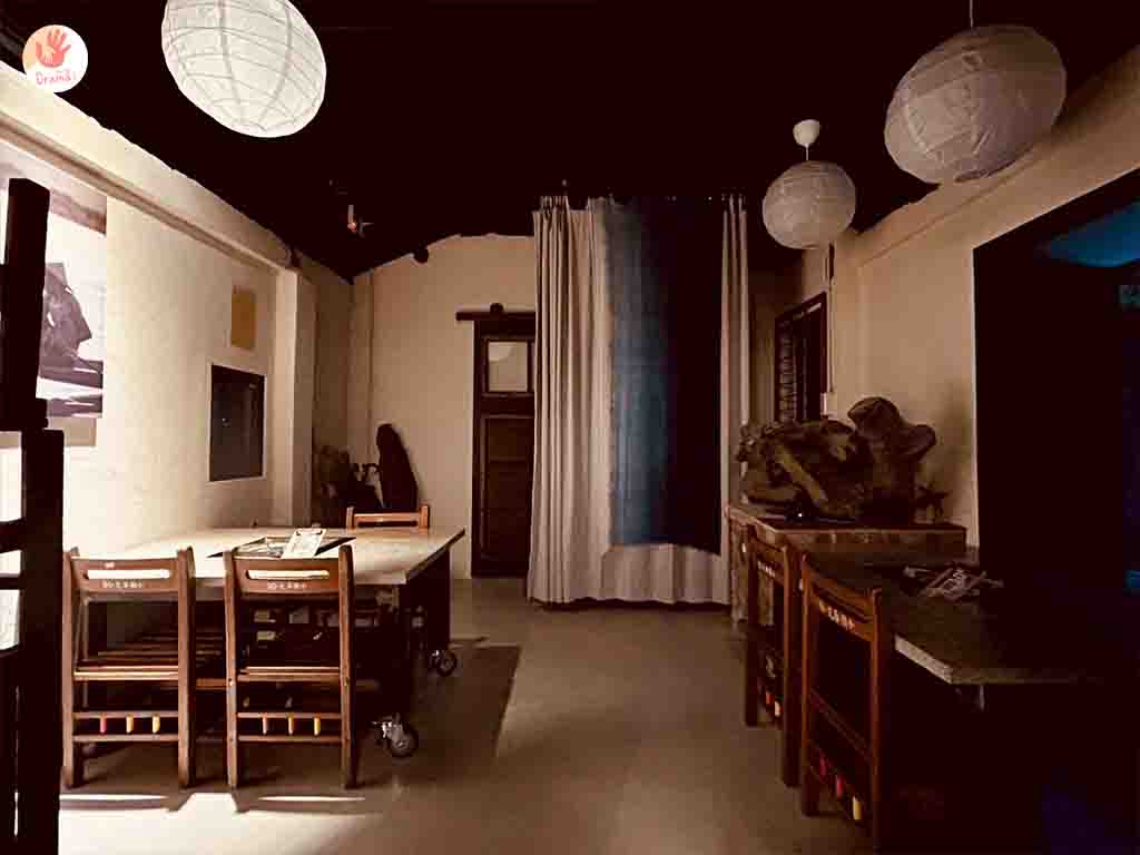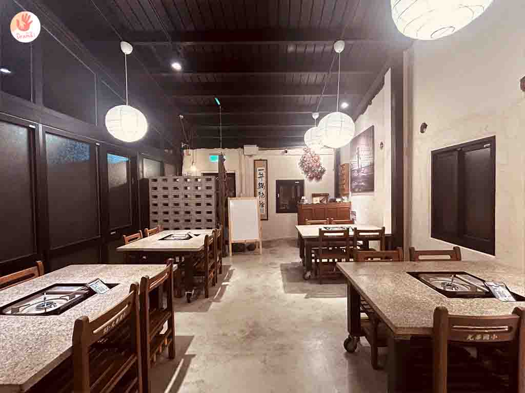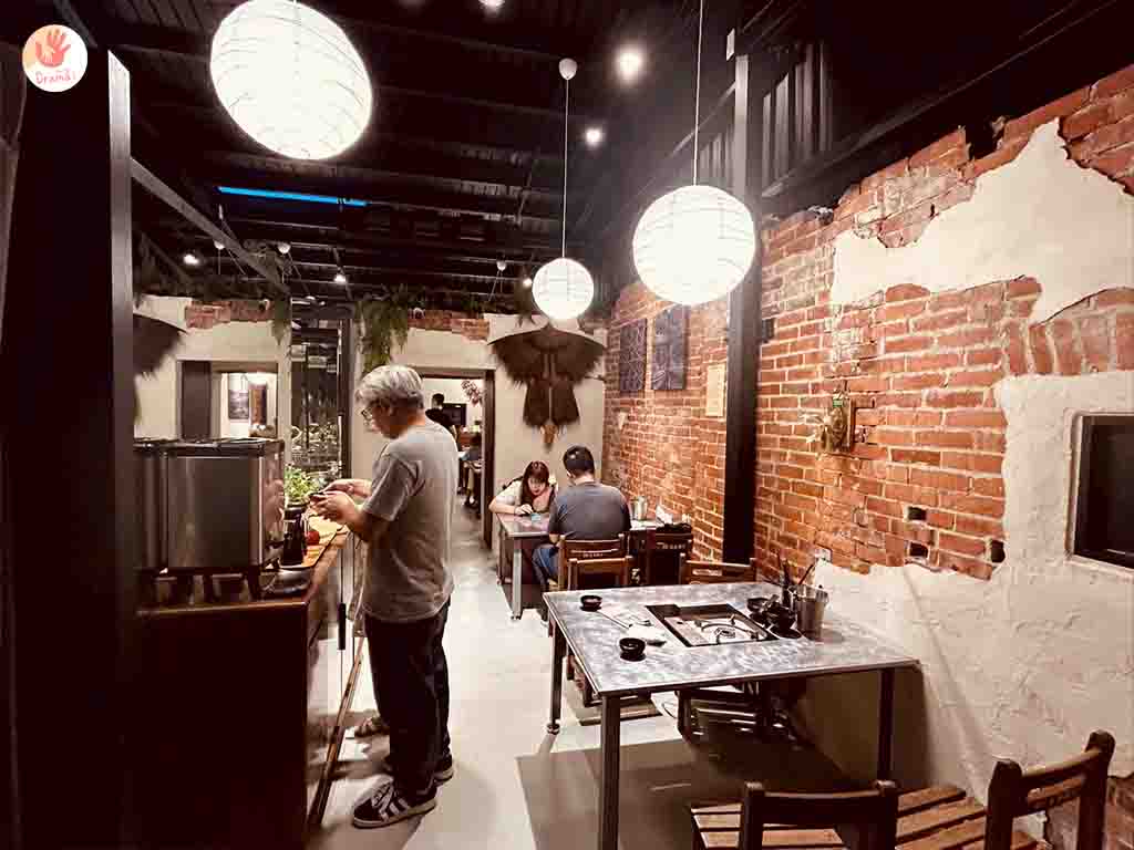 [一井鍋物館]室內是老宅改建的紅磚屋,保有一些老宅元素,狹長型的用餐空間,椅子是復古款的小學生椅子很可愛