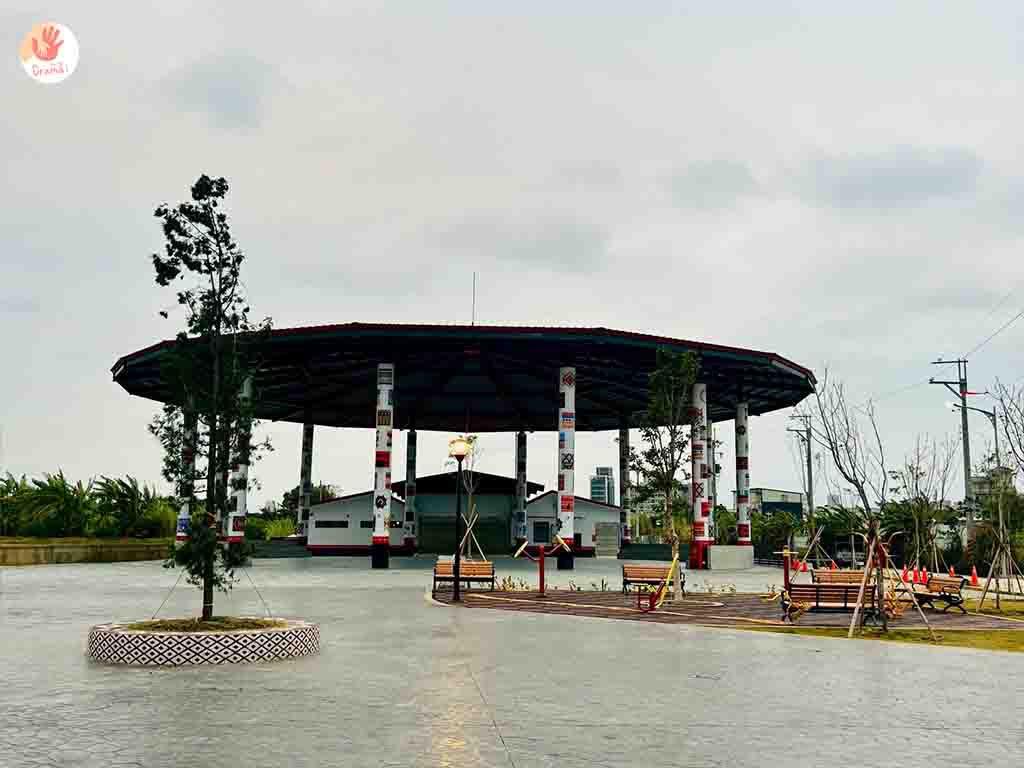 [魚筌造型公園]旁也有規劃了健身區,超大遮棚區也可以來打羽球~