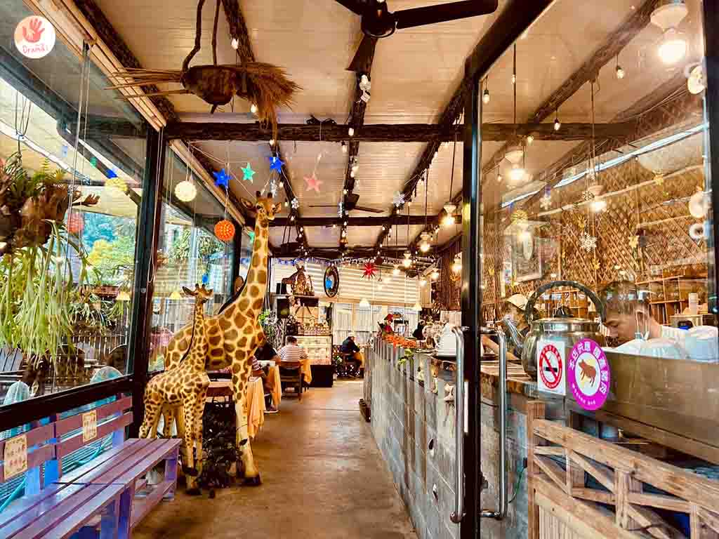 [天御花園]室內空間療癒長頸鹿和暖色調結合綠意植物,是微森林花園的用餐環境,很適合下午茶