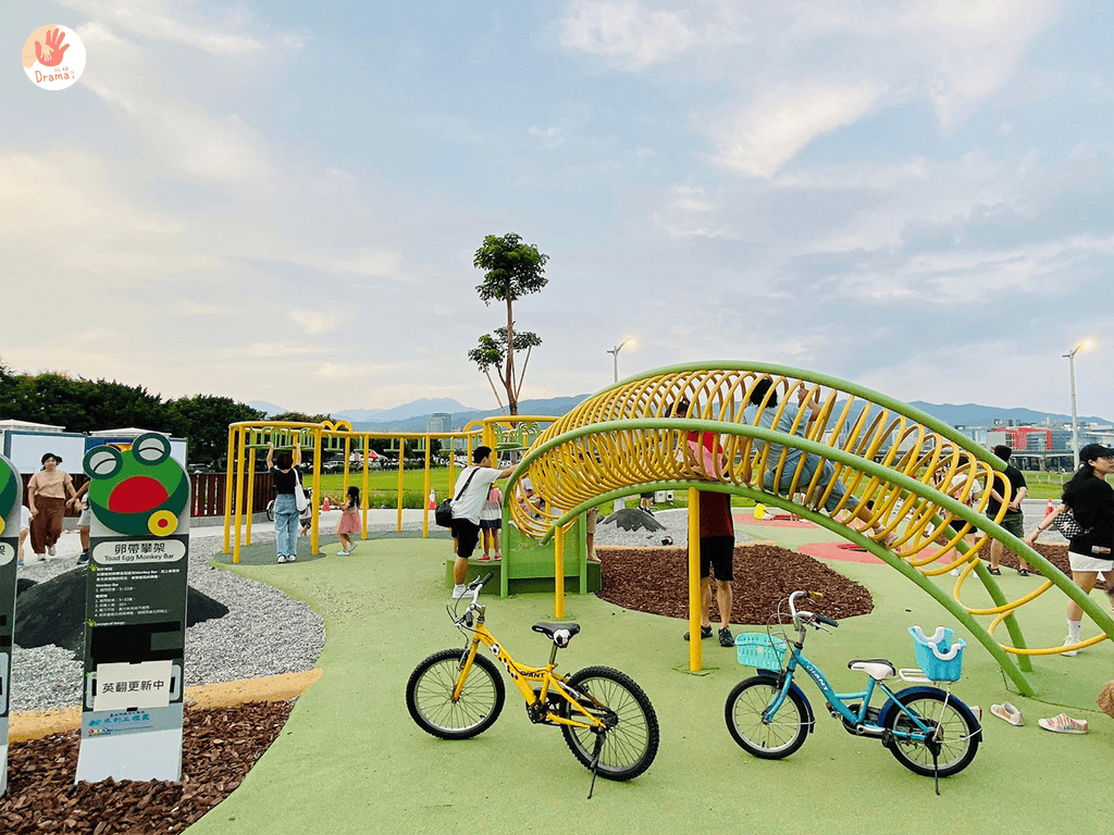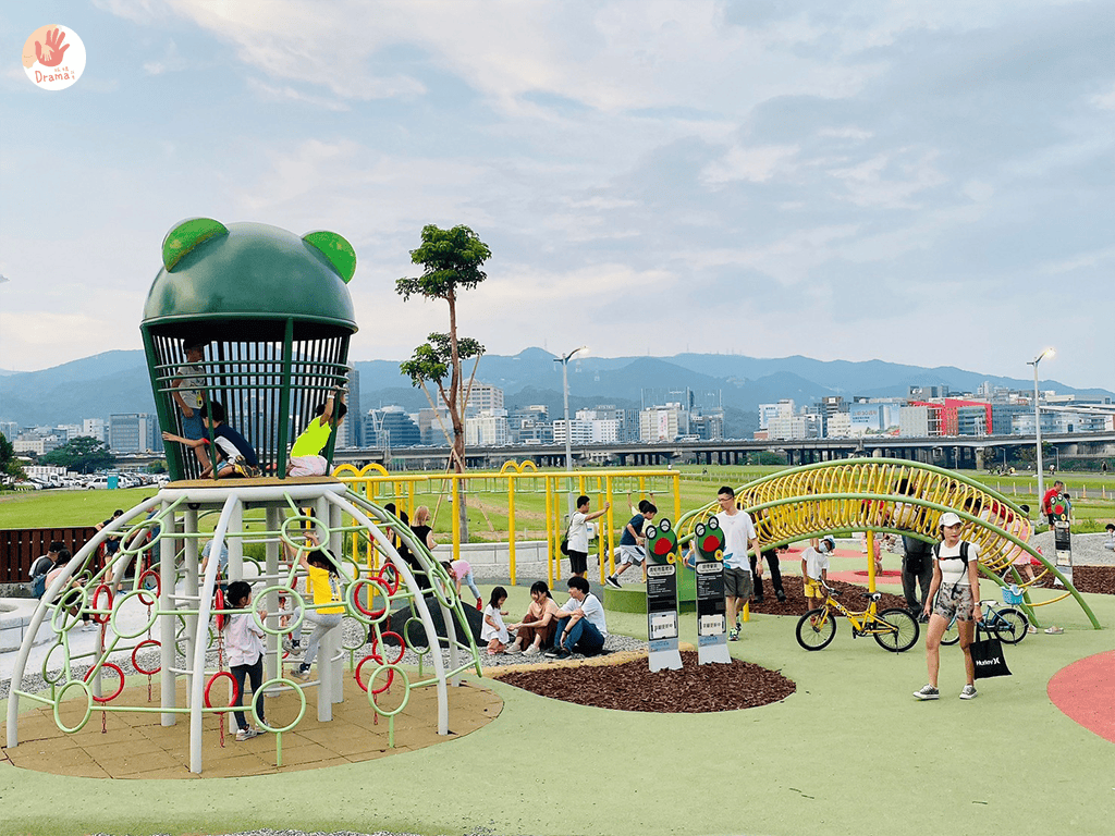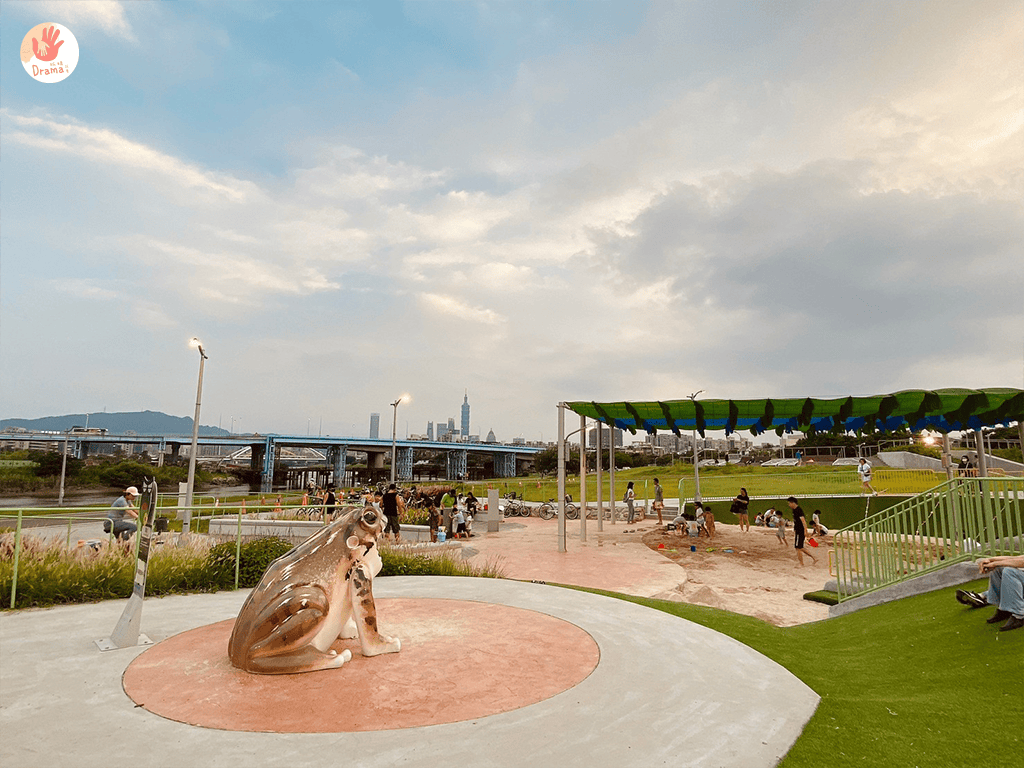台北特色公園又添一處———[蛙仔坑生態遊戲場],以青蛙為主題的特色公園,這裡比起大佳河濱公園來說,這裡好停車非常多,車位蠻多的,重點這裡也太Chill了~~竟然設計了看飛機的發呆椅區,午後根本就想發懶躺著把小孩聲當白躁音,哈哈哈~~~