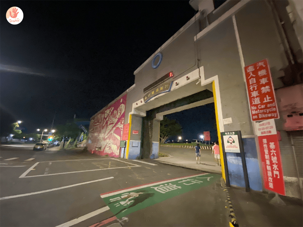 [蛙仔坑生態遊戲場] 我們傍晚玩一波後,晚上就走去民生社區吃晚餐,回程才想到拍一下6號水門的入口