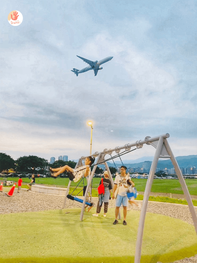 不定時就有松山機場的飛機飛躍上空,而且距離超近,小孩大人隨時都會興奮