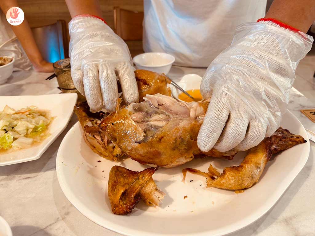[福哥石窯雞羅東店]來這裡用餐就算只有二大一小也一定要點一隻雞,石窯雞還可以選擇要手扒雞還是切好上桌,當然一定要自己扒才有FU呀,大家都選了自扒雞