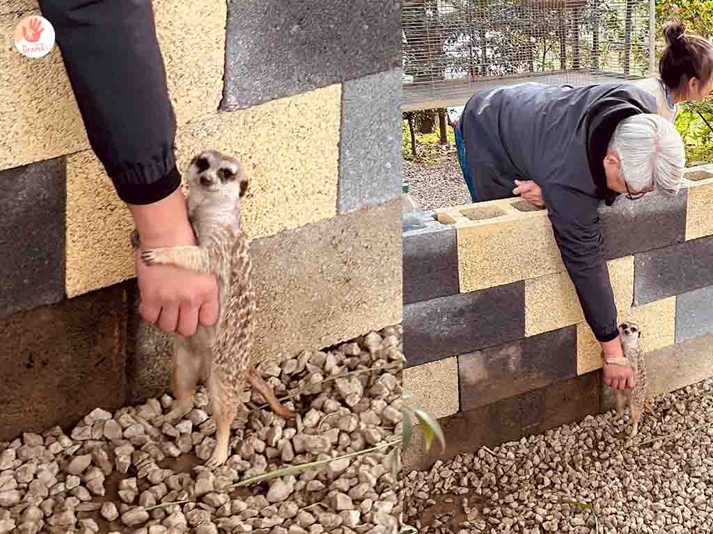 [陶淬湖庭園咖啡]有二隻可愛的狐獴其中一隻很愛撒嬌,把手伸下去牠會過來環抱住,模樣超級萌,記住狐獴是不吃草的,老闆也說不能餵食~