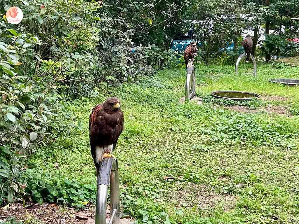 [陶淬湖庭園咖啡]一入園就看到好多隻老鷹在入口迎賓很帥氣的模樣