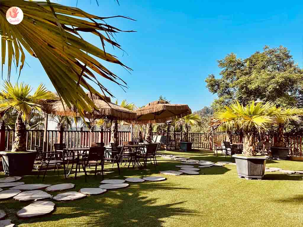 [桂林映象會館]一旁就是玻璃屋咖啡廳,被綠意和茅草涼亭包圍下,有一種在國外渡假的FU