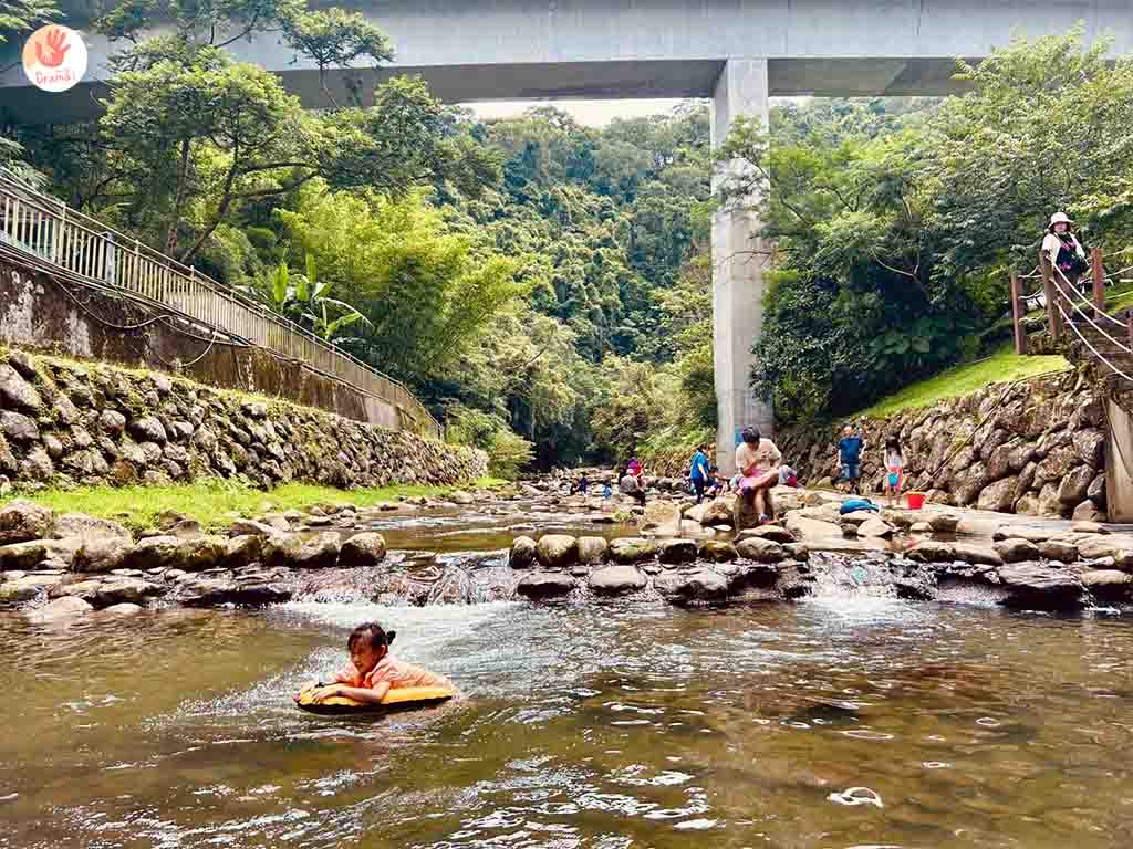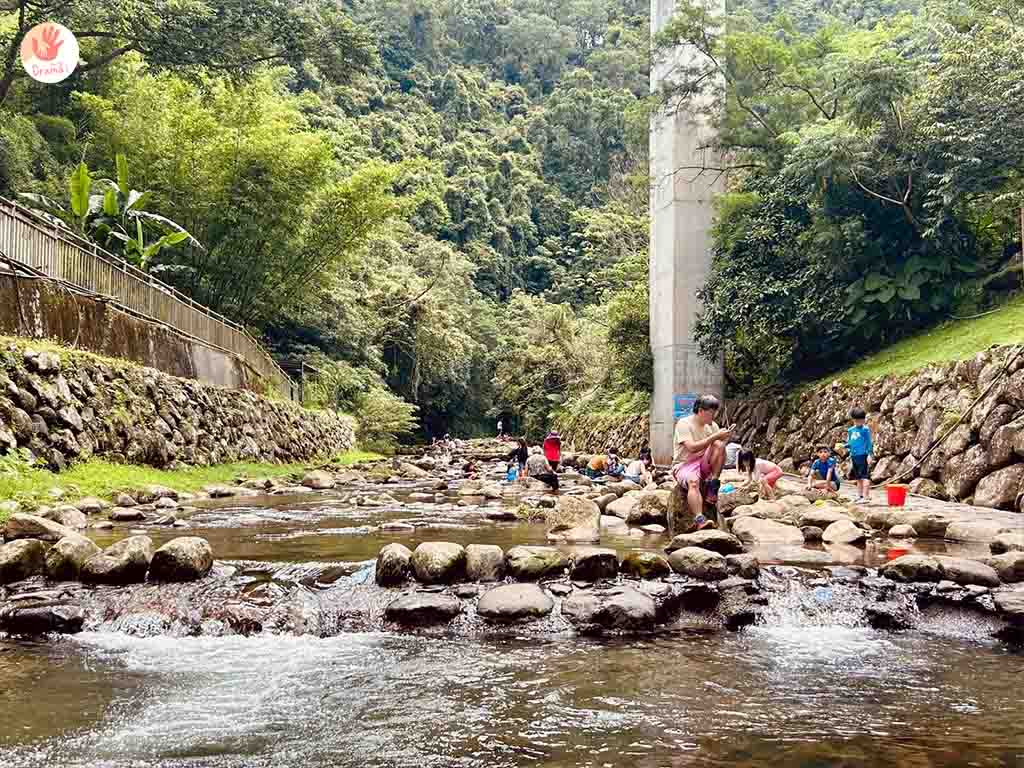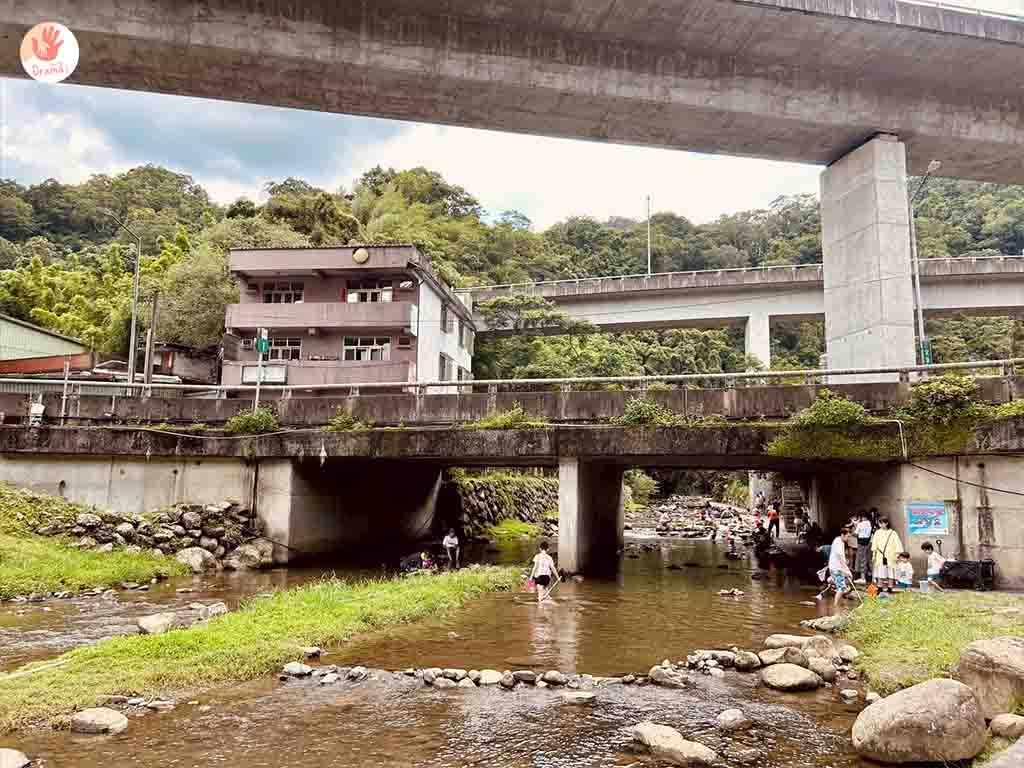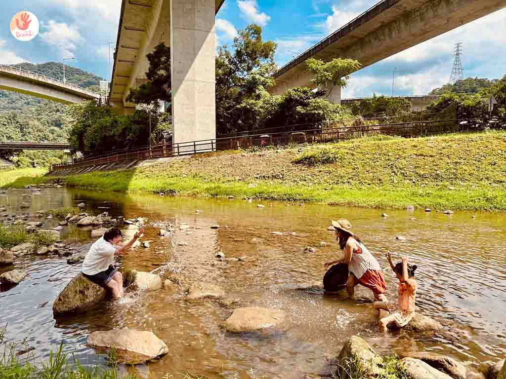 [下坑子口溪親水遊憩區]位於坪林交流道附近的下坑子口溪,設有廁所和停車場,Google map直接搜[下坑子口溪親水遊憩區]就能抵達,下階梯就可以直接開玩