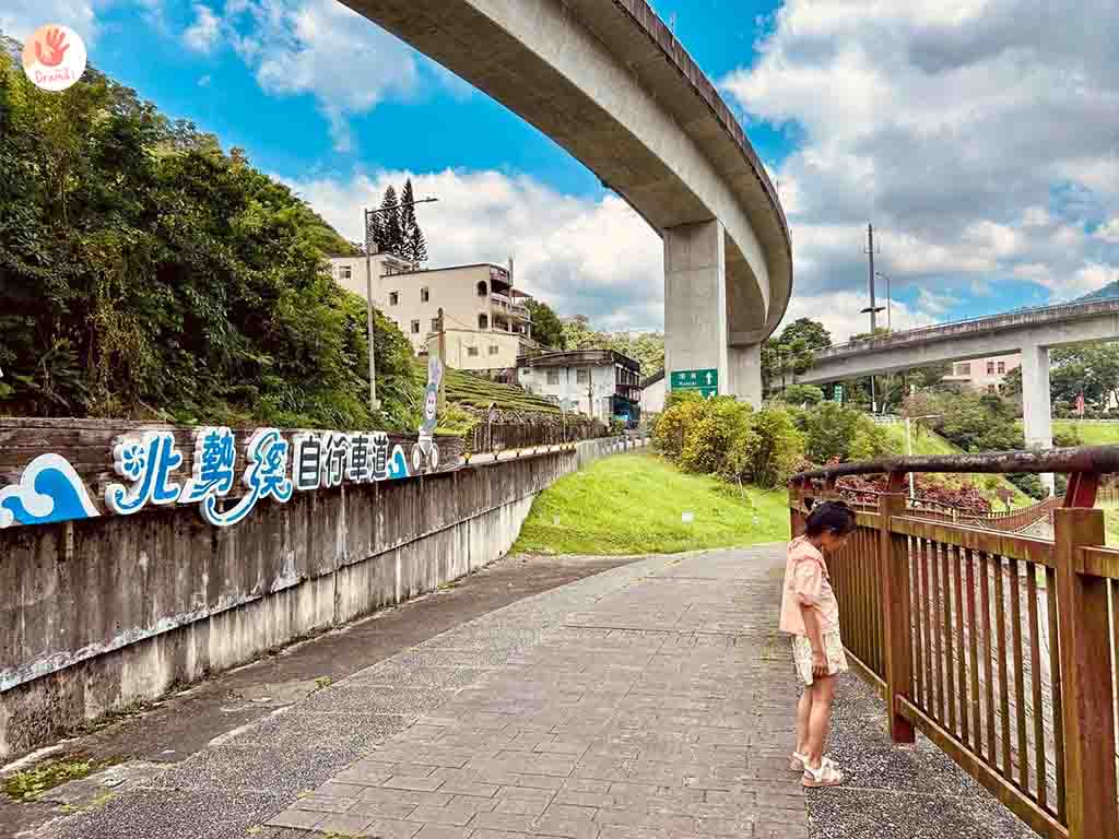 另一處下水點是往下游處,有一個北勢自行車道的斜坡道旁,階梯不到十階,如果帶長輩來可以走這處比較不辛苦