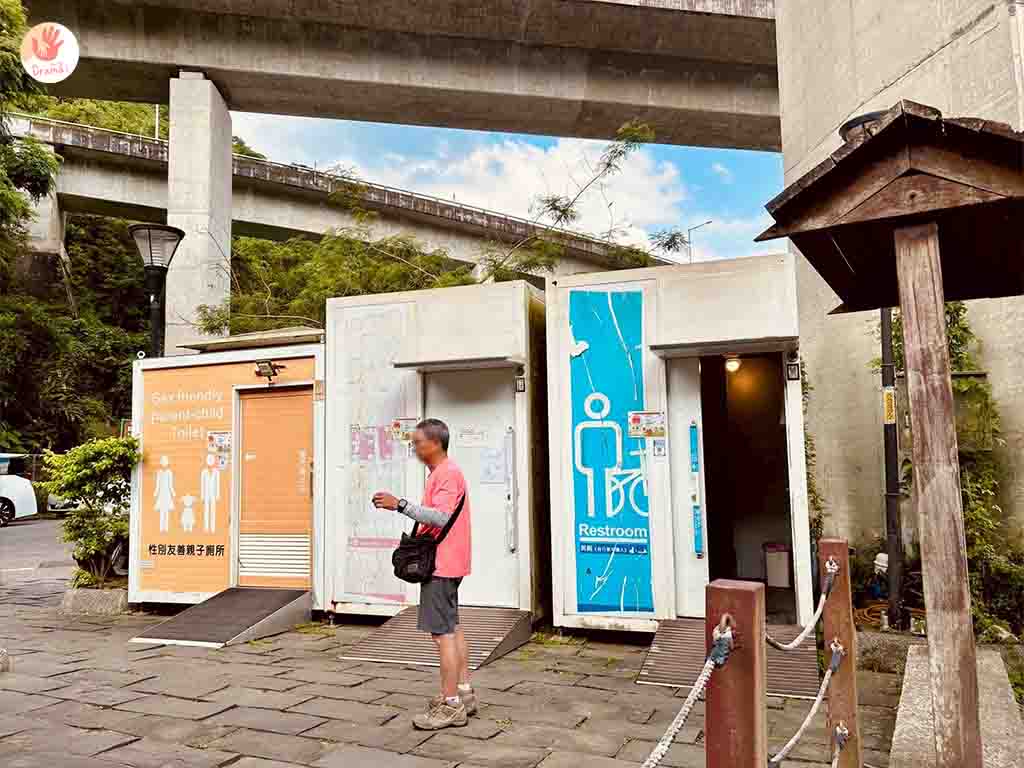 [下坑子口溪親水遊憩區]有二個下水階梯,一處在廁所旁,階段較多