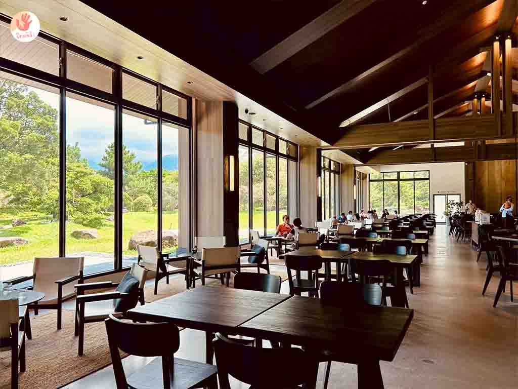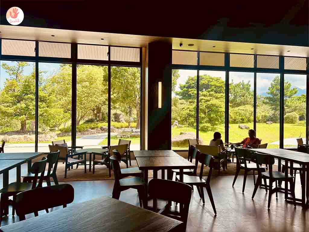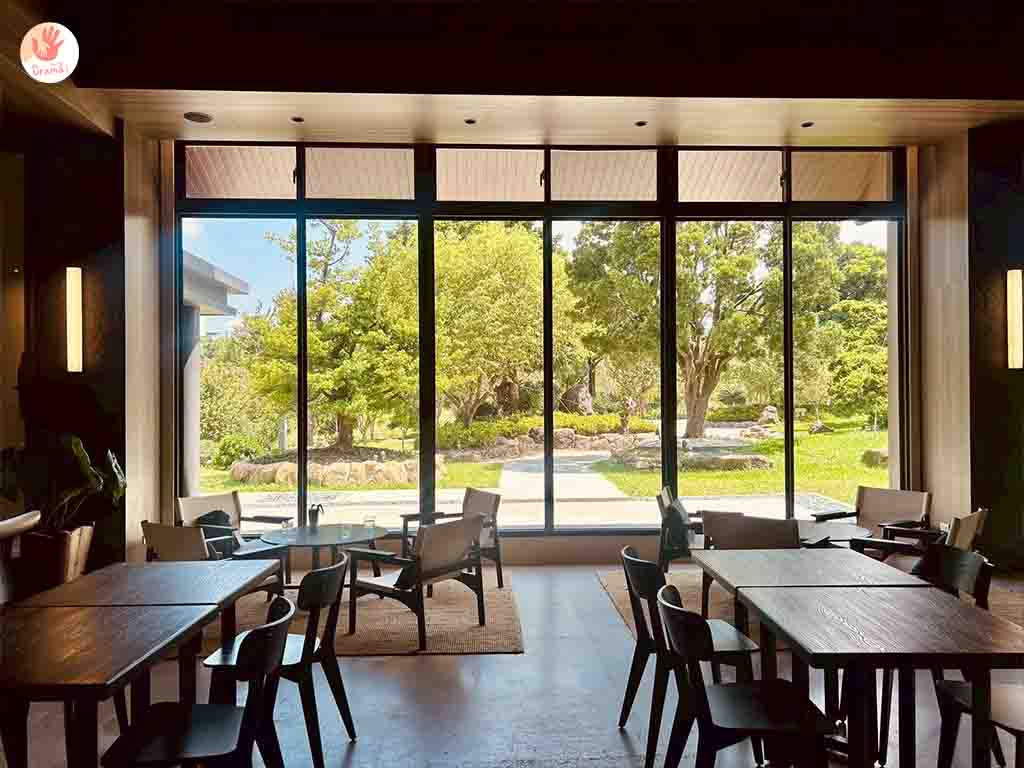 [晴花鹿苑]玻璃窗座位,戶外的日式庭園映入眼簾,來這裡下午茶很放鬆