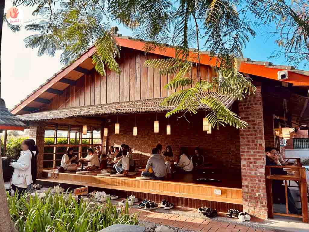 [虎珍堂森之院]打造了落羽松小湖畔景觀,在湖中走道有日式打襌座位供拍照,不是用餐座位