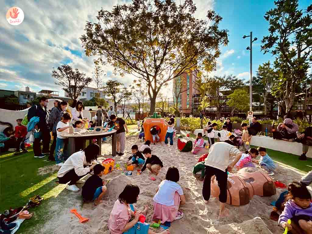 [新莊快樂公園]也規劃了沙池區,可愛的蘿蔔造景假日真的是超人氣