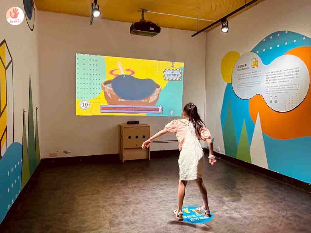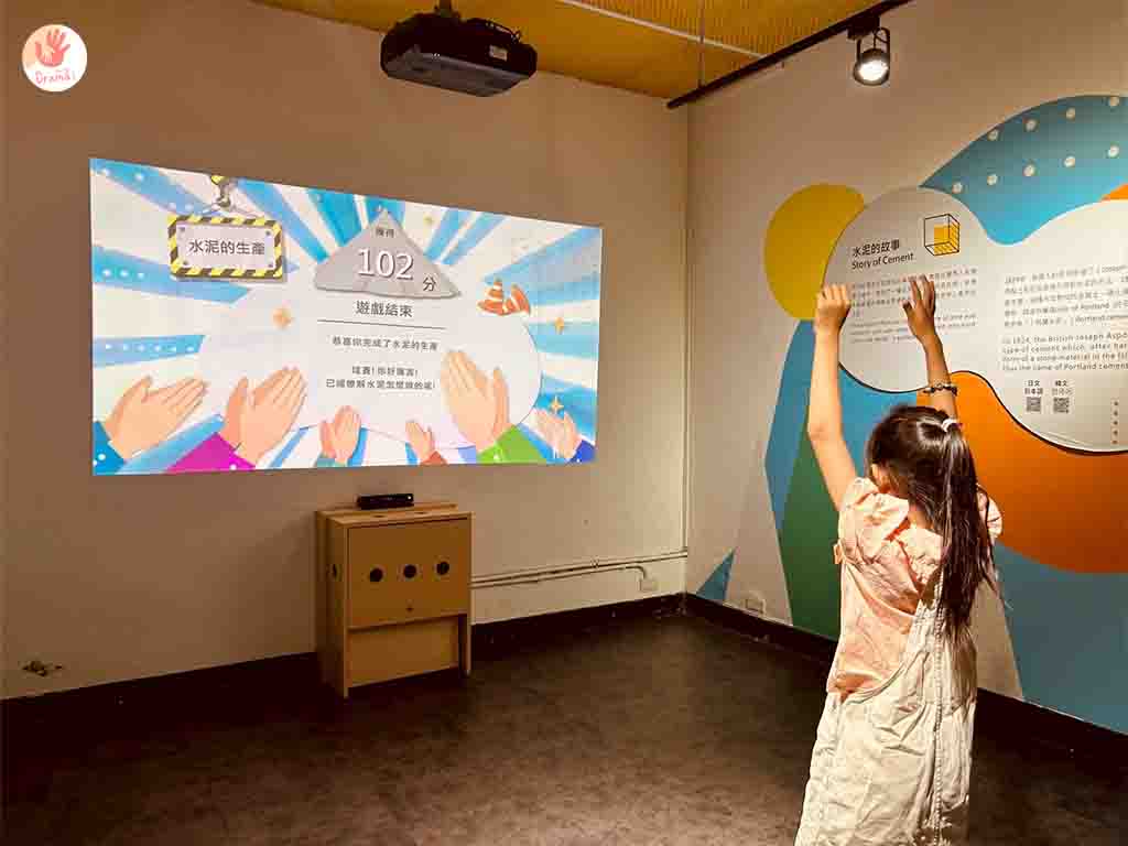 [欣欣水泥森活園觀光工廠]把前身辦公間變身展區,其中有一間可以玩投影互動還蠻有趣的