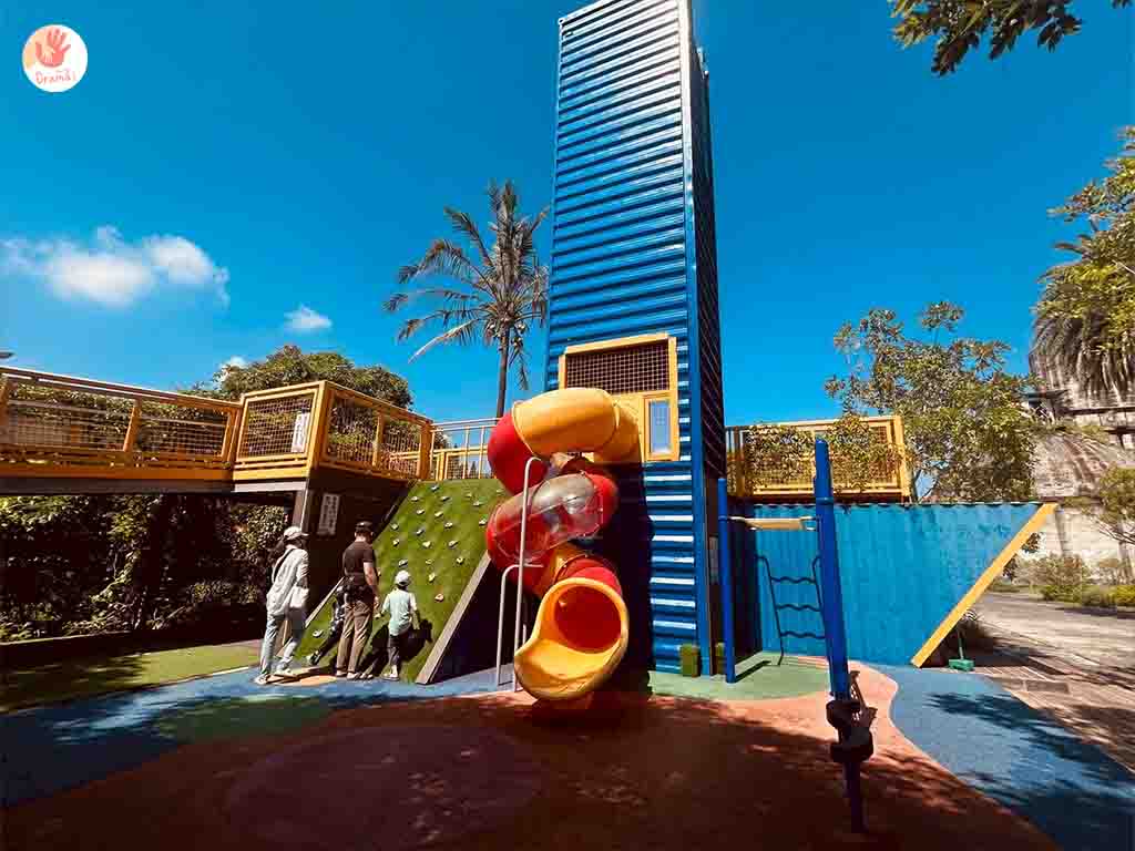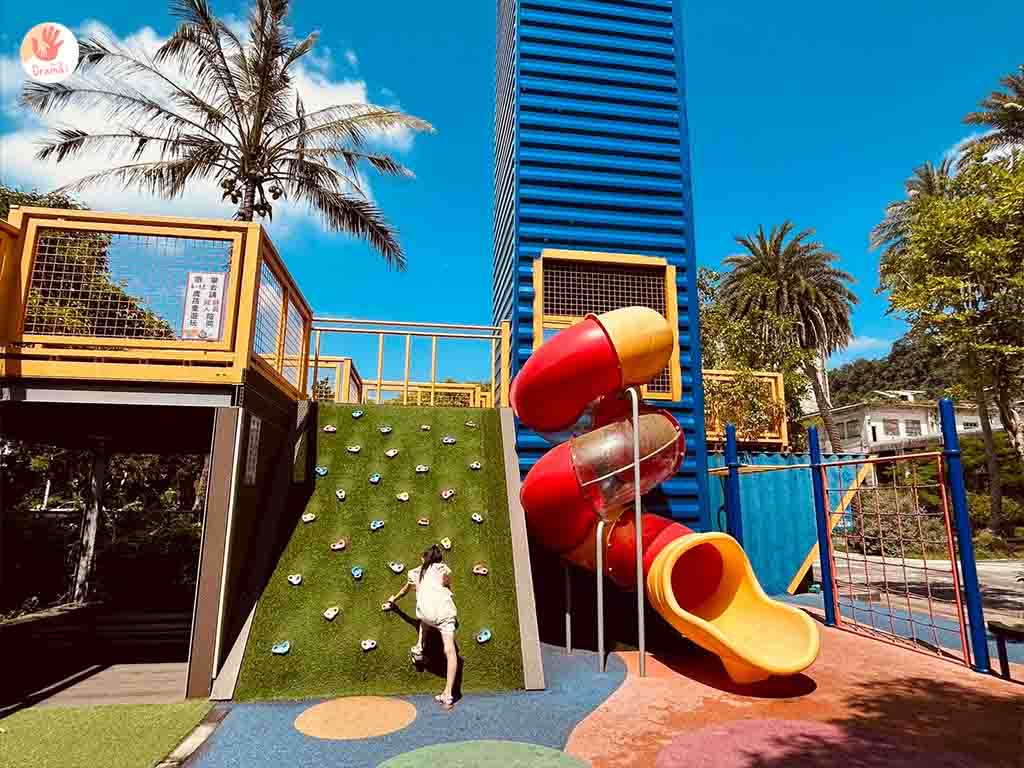 [欣欣水泥森活園觀光工廠]戶外也設有小孩放電的遊戲場,有攀岩和溜滑梯,小孩也可以在戶外曬曬太陽玩一波