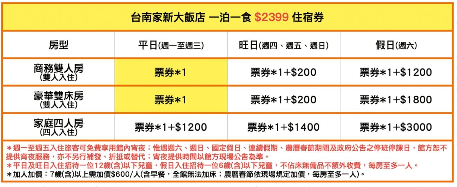 台南家新大飯店|開團優惠住宿券