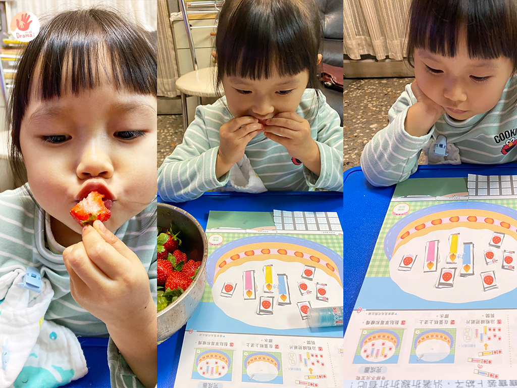冬天到了,剛好有草莓蛋糕剪貼,配上新鮮草莓水果,寶包邊吃邊玩,早就沒有在喊要幼幼台了
