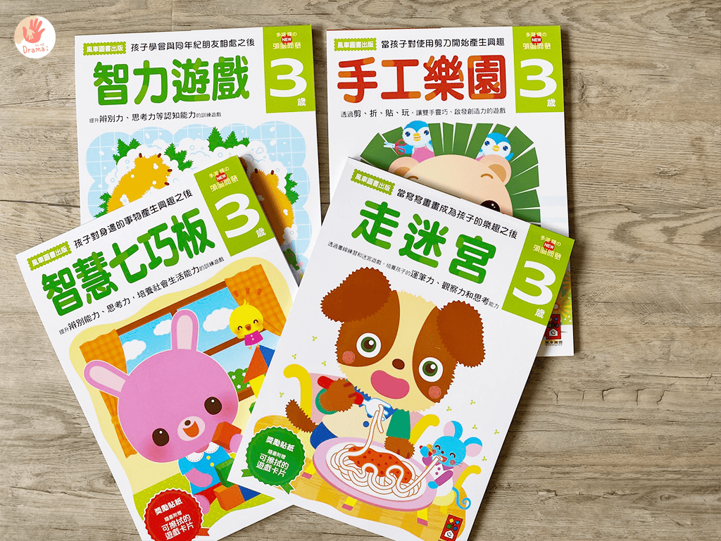 孩子2歲後,認知簡直就是大躍進,許多玩具都已是三分鐘熱度,如果爸媽陪伴招架不住,不知道玩什麼就掏出手機是很NG的,這時候你需要多湖輝的NEW頭腦開發的系列益智親子互動書,這系列包含走迷宮/手工樂園/智慧遊戲/智慧七巧板,很適合不知道要怎麼跟孩子玩的爸媽們,而且也超級適合用來打發時間,自從有了這個,女鵝再也沒說過要幼幼台。
