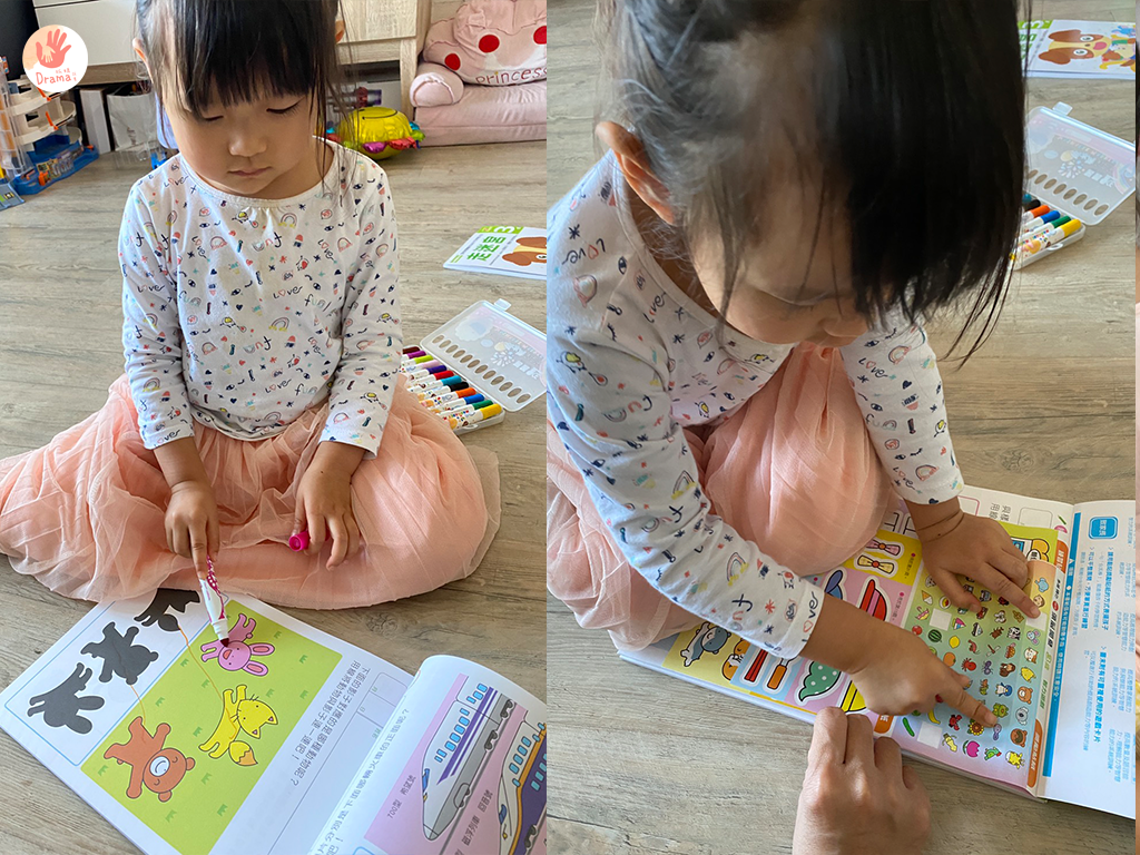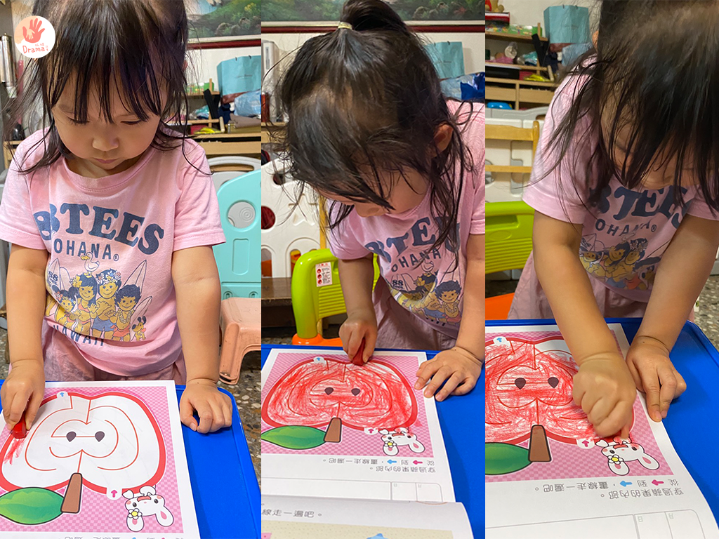 夏天入手的時候想填滿整個蘋果畫到滿頭友汗,看著寶包玩得開心,媽媽這時也可以小小放風,但我都會坐在她的對面陪著她,看她的進度給予適當的稱讚。