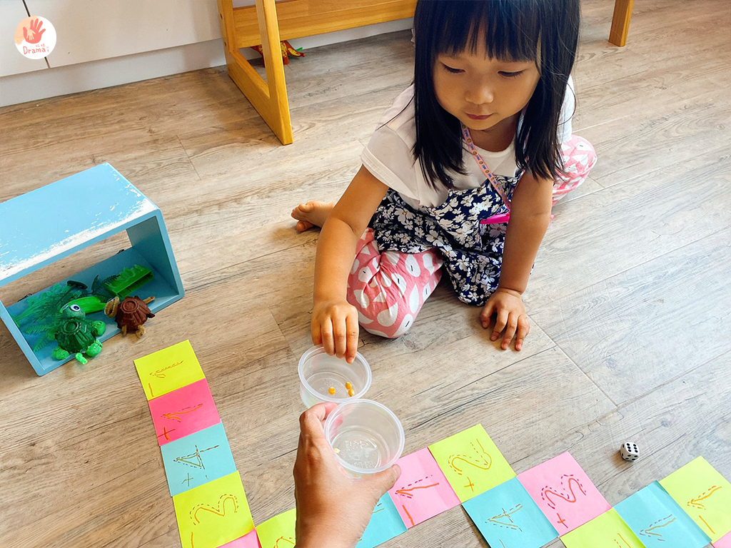 接著再請寶貝決定要畫加(+)還是減(—),陪伴著孩子看著她開心的表情覺得很幸福