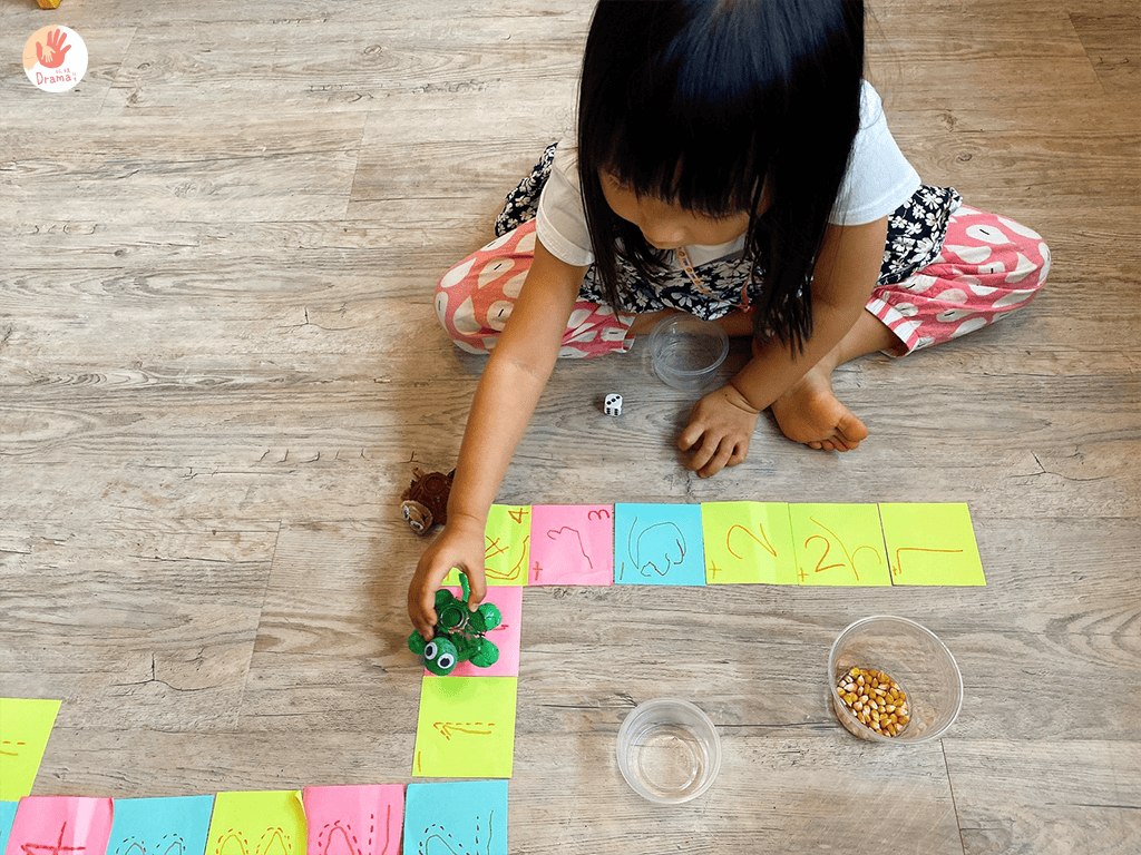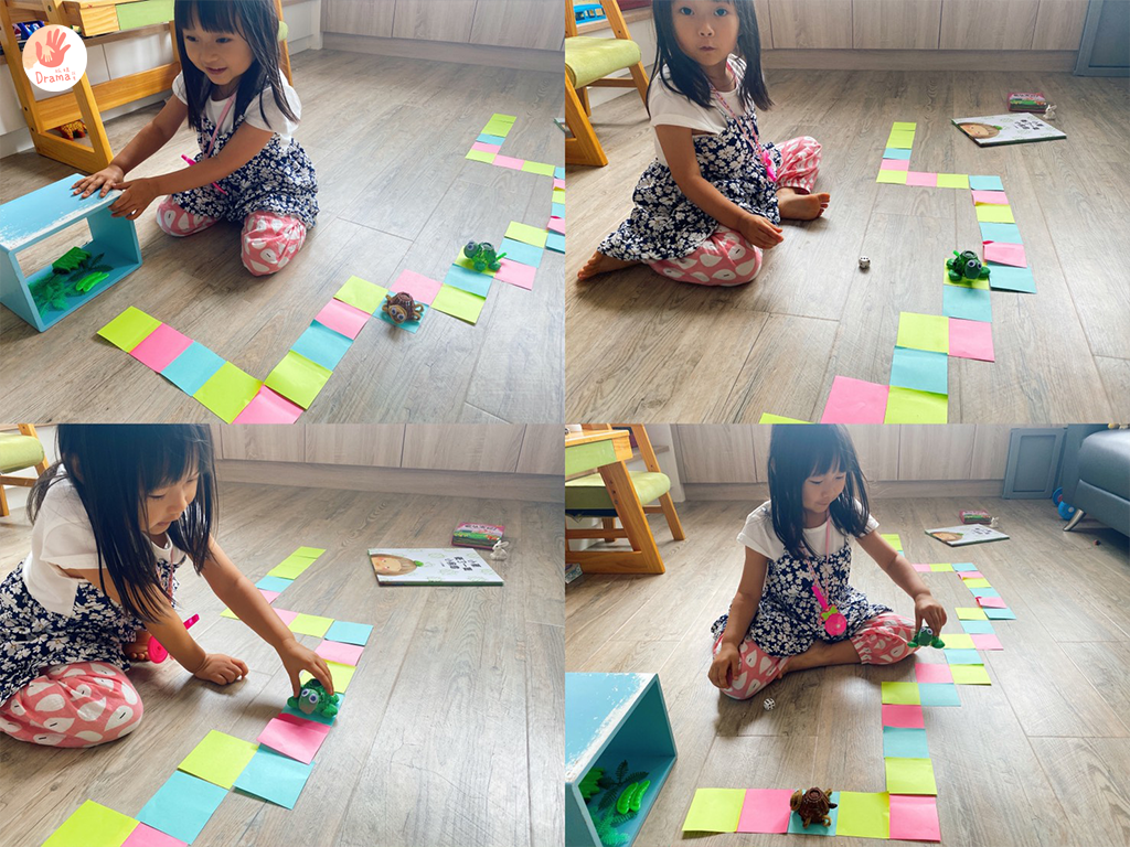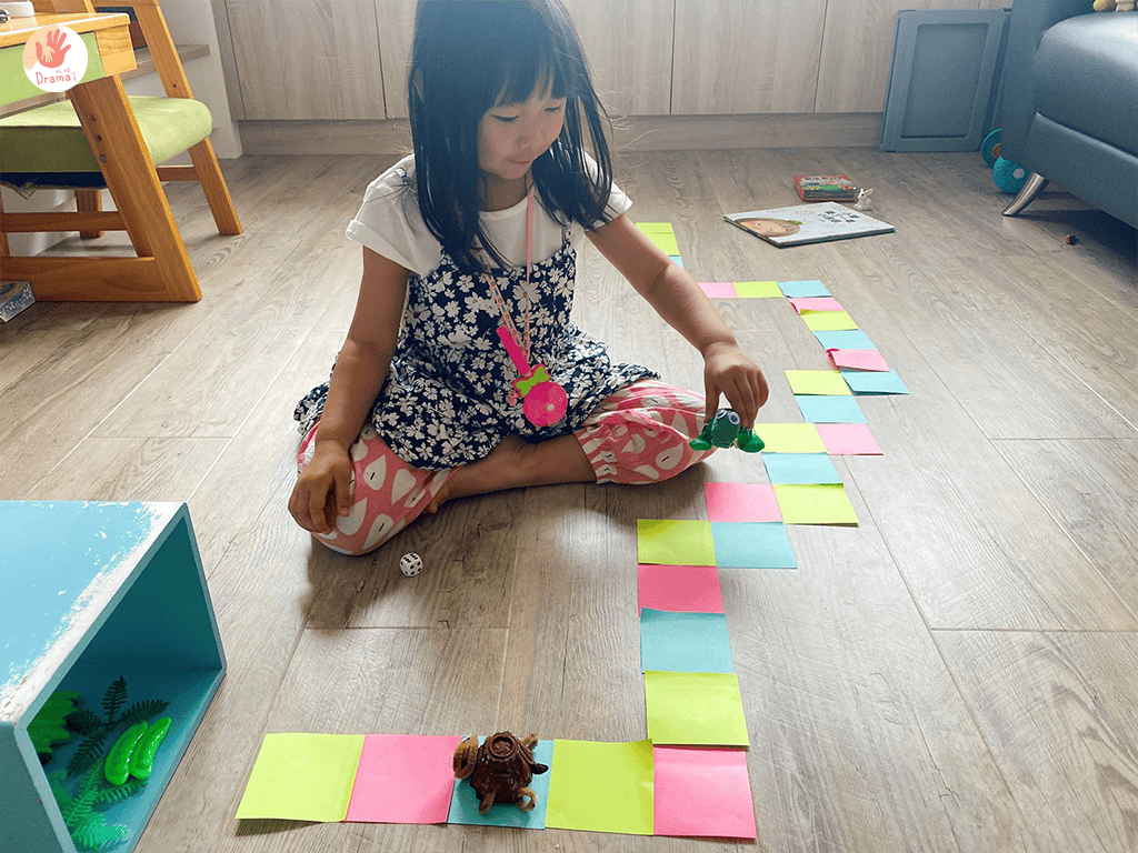 初級玩法|貼好的路線,擲骰子決定步數前進,最先抵達就獲勝