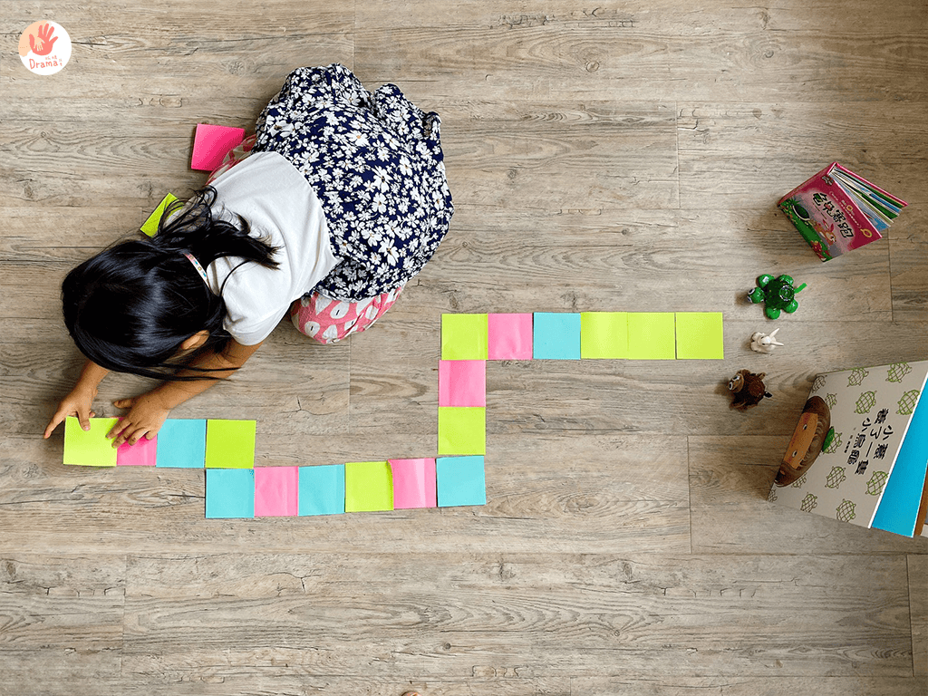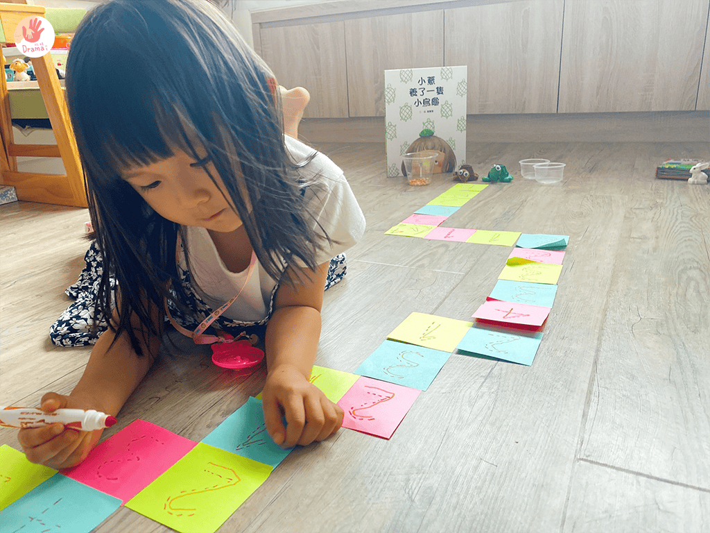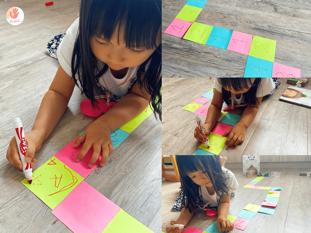 多色便利貼讓寶貝決定前進的路線,光是這個貼這個寶貝就超級專注,而且還很龜毛的要貼的很整齊