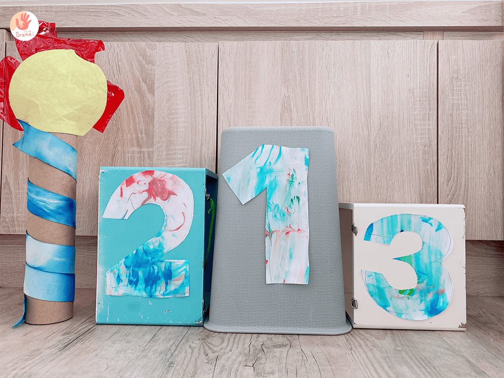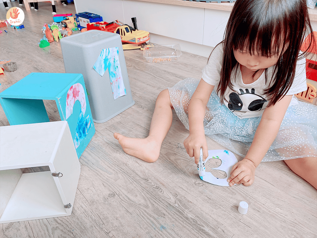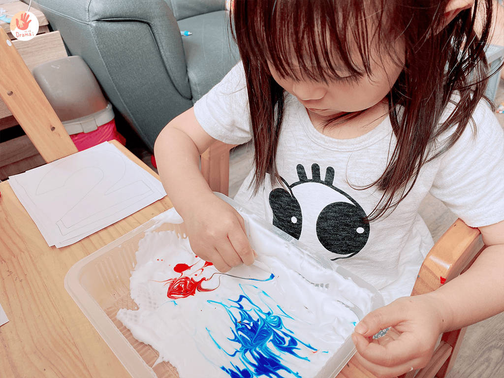 頒獎台上的123,我們是用刮鬍泡+食用色素染紙,再剪下數字