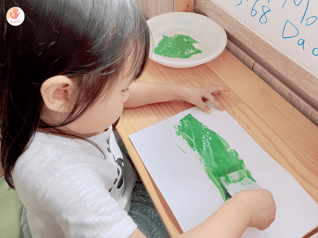拿出A4紙和卡片,帶著孩子玩刮畫,把A4紙染成綠色曬乾