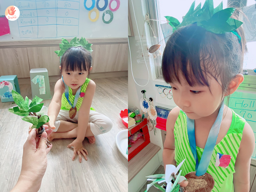 跟寶貝解說擲鐵餅的運動項目,選手的姿勢是怎麼樣,女鵝現在換上運動服整個就有運動靈魂,玩得很投入