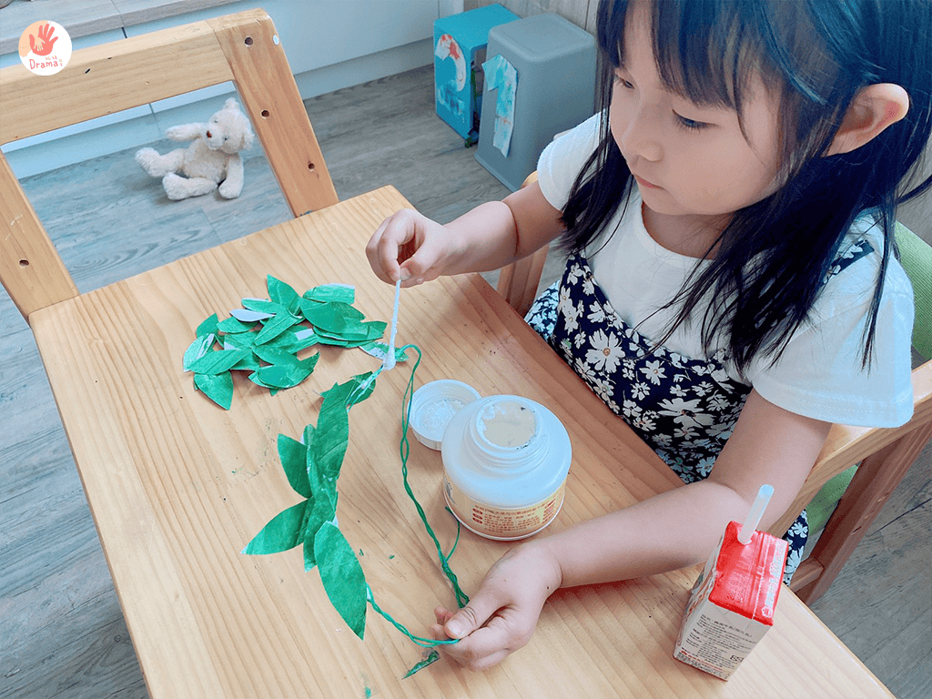 最後還說她要貼小葉子,就再把葉片剪半,我都讓寶貝自由創作,她想要我就說好