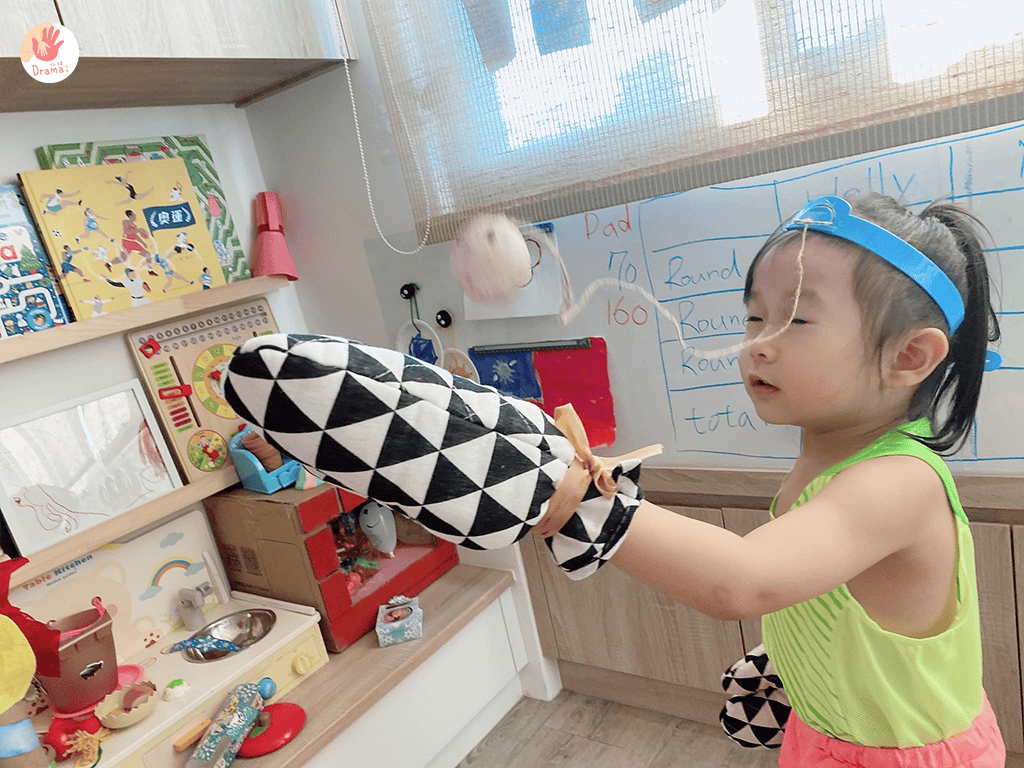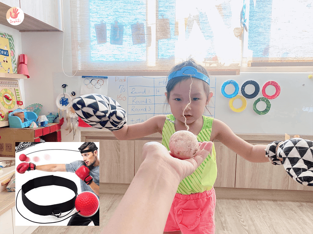 抓媽的這個玩法是參考拳擊的練習球模式,線的部份,如果有彈力的線是最好,這樣球比較會反彈
