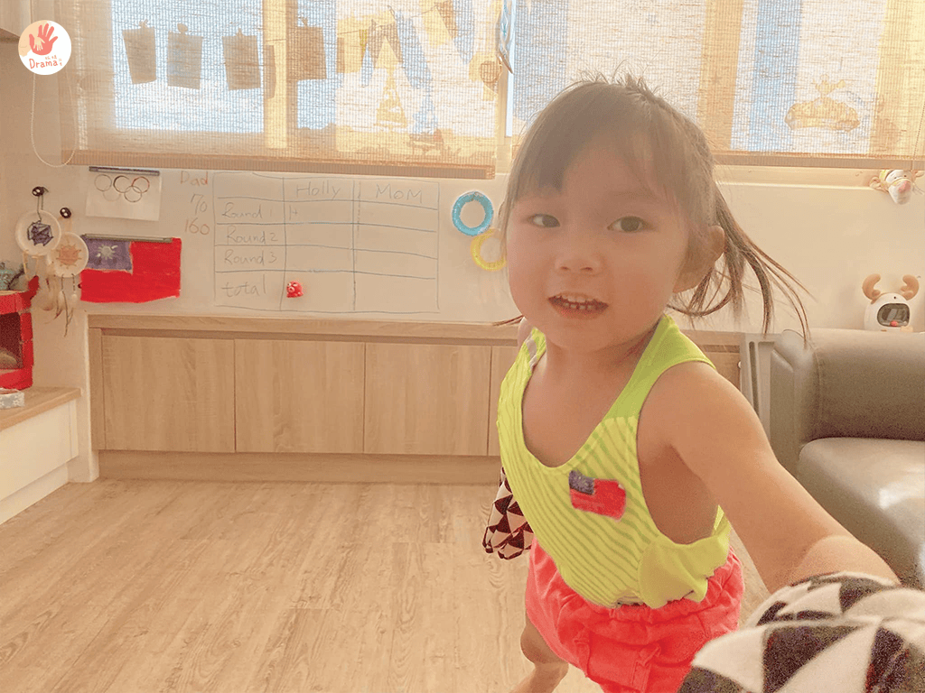 女鵝的眼神超級專注,不過這個玩法對於小小孩還是有難度,不是一時半刻就能學會