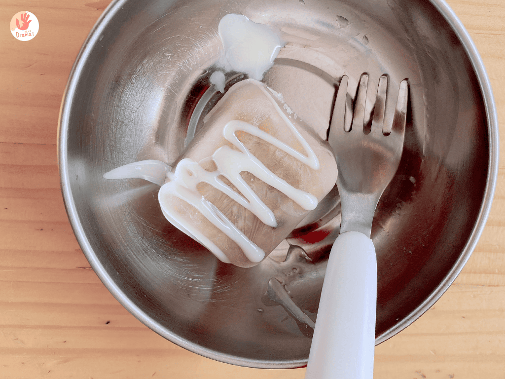 因為媽媽糖實在加太少,所以吃冰時就加了一點煉乳,女鵝整個超愛