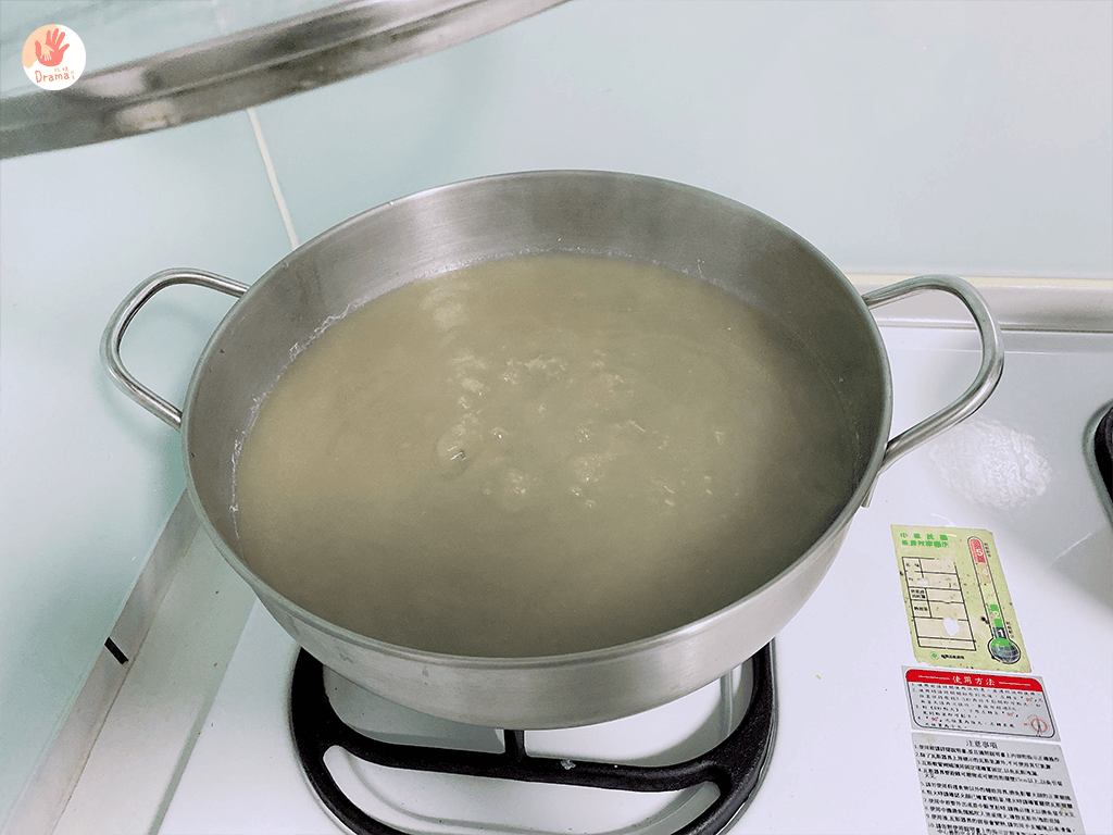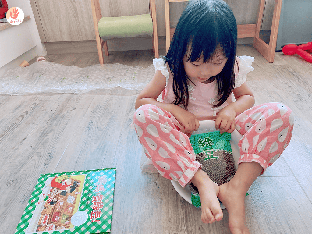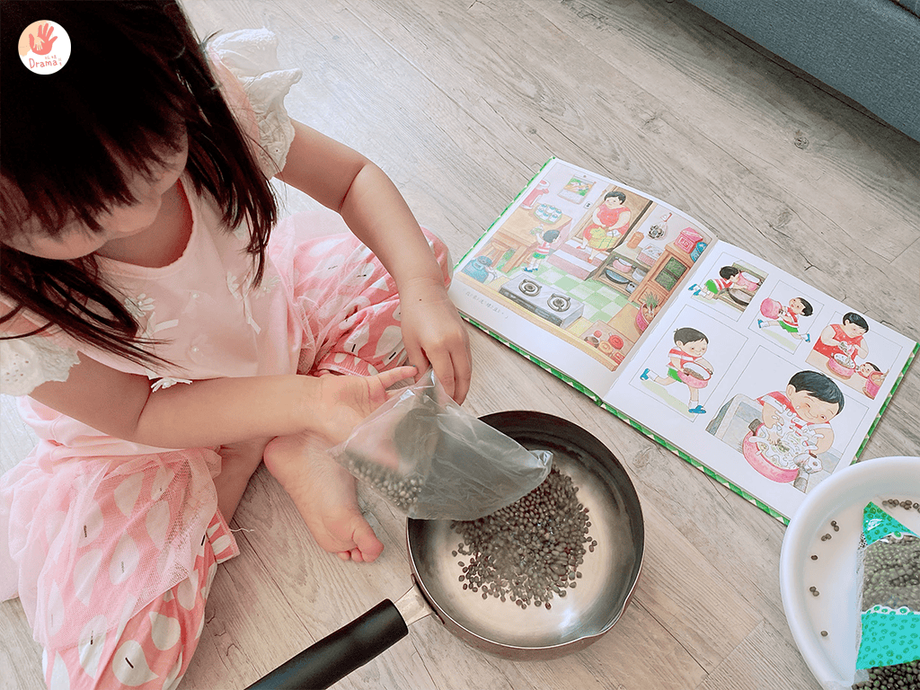 整包倒入鍋子中,有這本繪本跟著步驟走,抓媽也第一次體驗煮綠豆