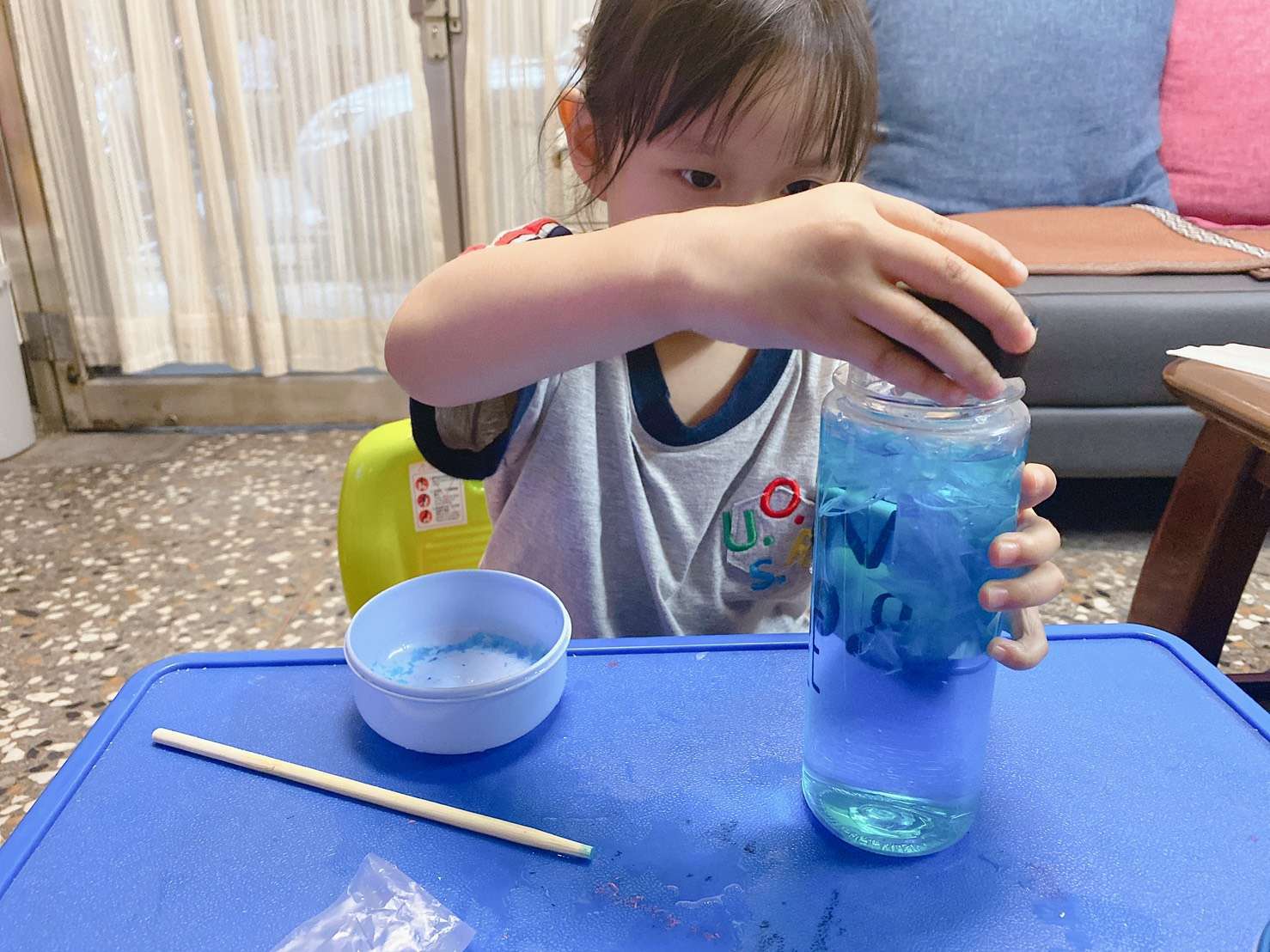 我們是用食用色素藍,也可以用水彩藍喲,也可以問問寶貝想要什麼顏色