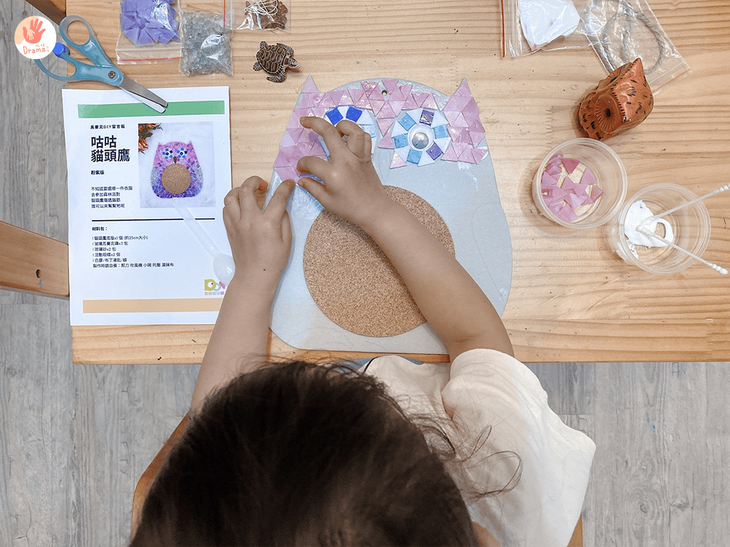 這組DIY在官網適合年齡是寫國小一年級以上,我們家寶包目前4歲也很適合耶,因為馬賽克拼貼很適合訓練專注力,雖然我們分了幾次才完成,但每次玩都有不同樂趣,很適合在家和寶貝玩。