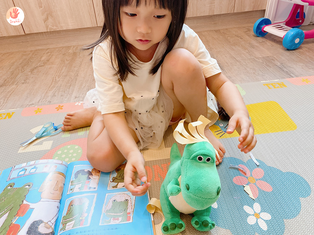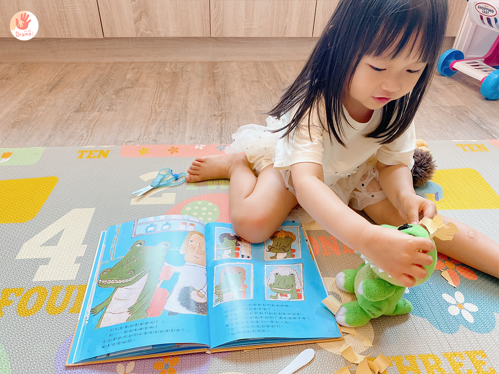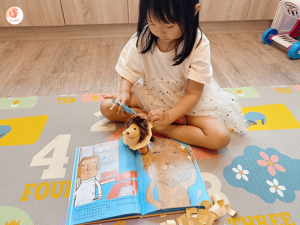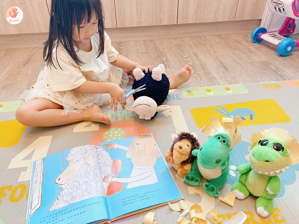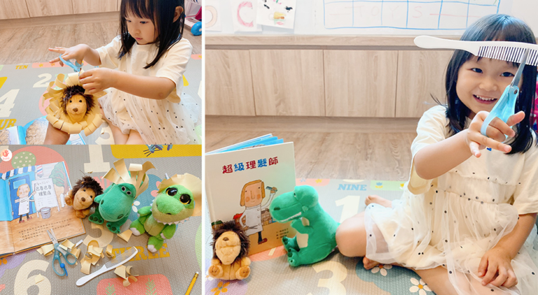 之前我們也有搭配毛線剪髮,這部分也可以獨立玩好久,但加上繪本,真的會讓角色扮演有更多樂趣